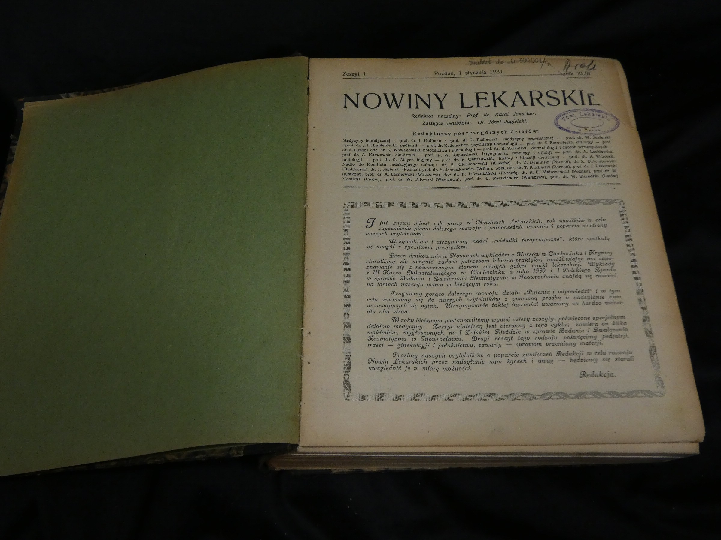 Nowiny Lekarskie. Organ Wydziału Lekarskiego Towarzystwa Przyjaciół Nauk Poznańskiego. Pod red. H. Święcickiego. Poznań. Nakł. Komitetu "Nowin Lekarskich"