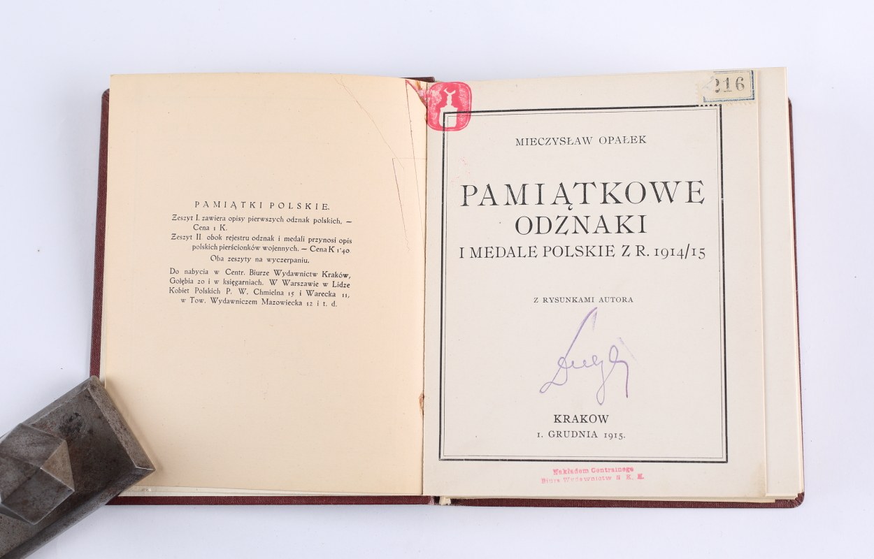 OPAŁEK Mieczysław - Pamiątki polskie 1914-1917. Z. I-III. Pamiątkowe odznaki i medale polskie z r. 1914/15. Krakow (!) I. Grudnia 1915 / Pamiątki polskie 1914-1915. Zeszyt drugi. Odznaki, medale, plakiety, pierścionki. Z rysunkami autora. Kraków I. Marca