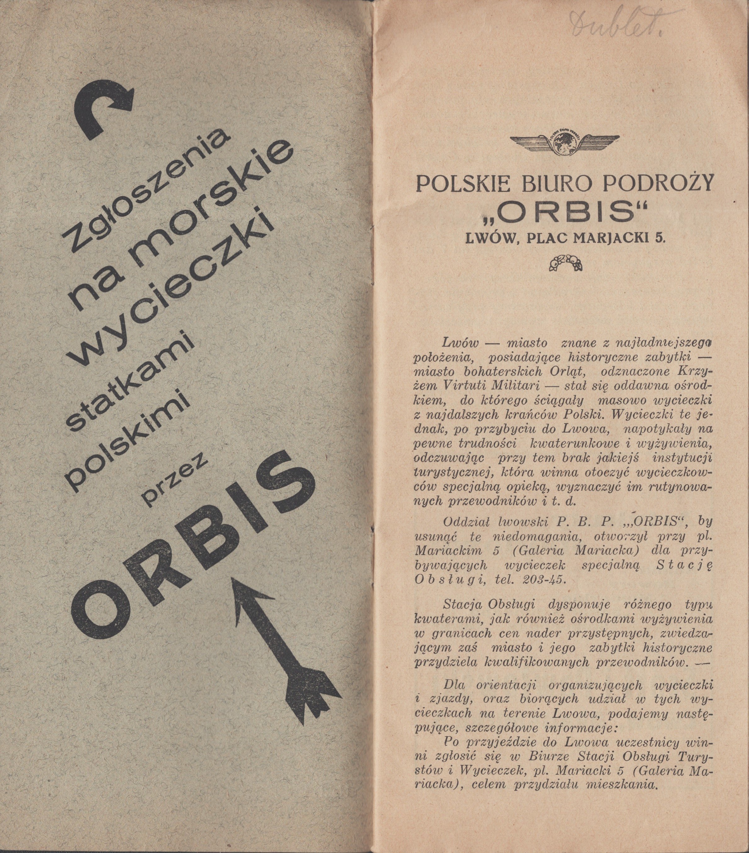 Orbis] Przewodnik Informacyjny Lwów. Nakład Orbisu, Lwów, pl. Mariacki 5. [lata 30. XX w.]