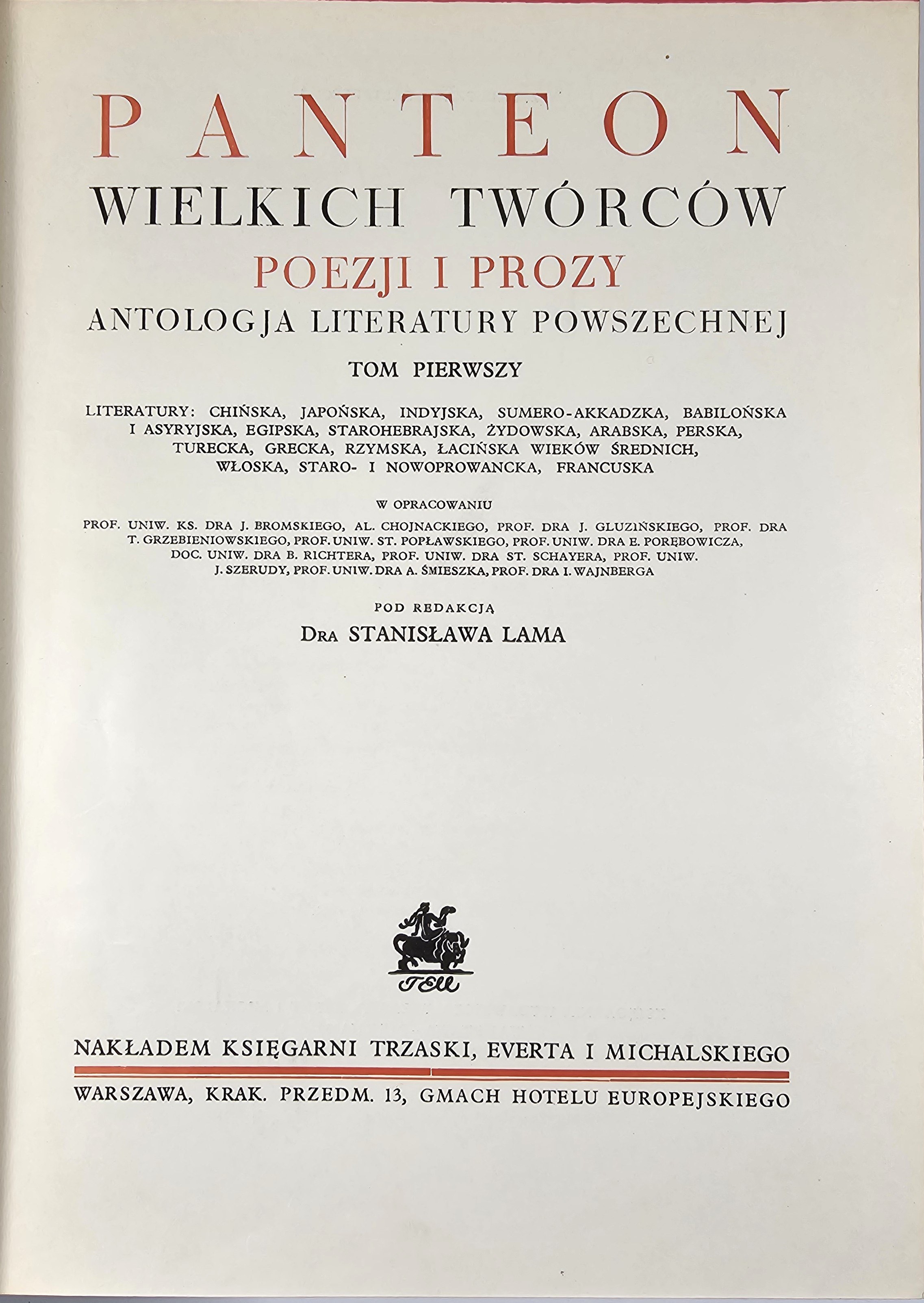T.1 zawiera literatury : chińska, japońska, indyjska, sumero-akadzka, babilońska i