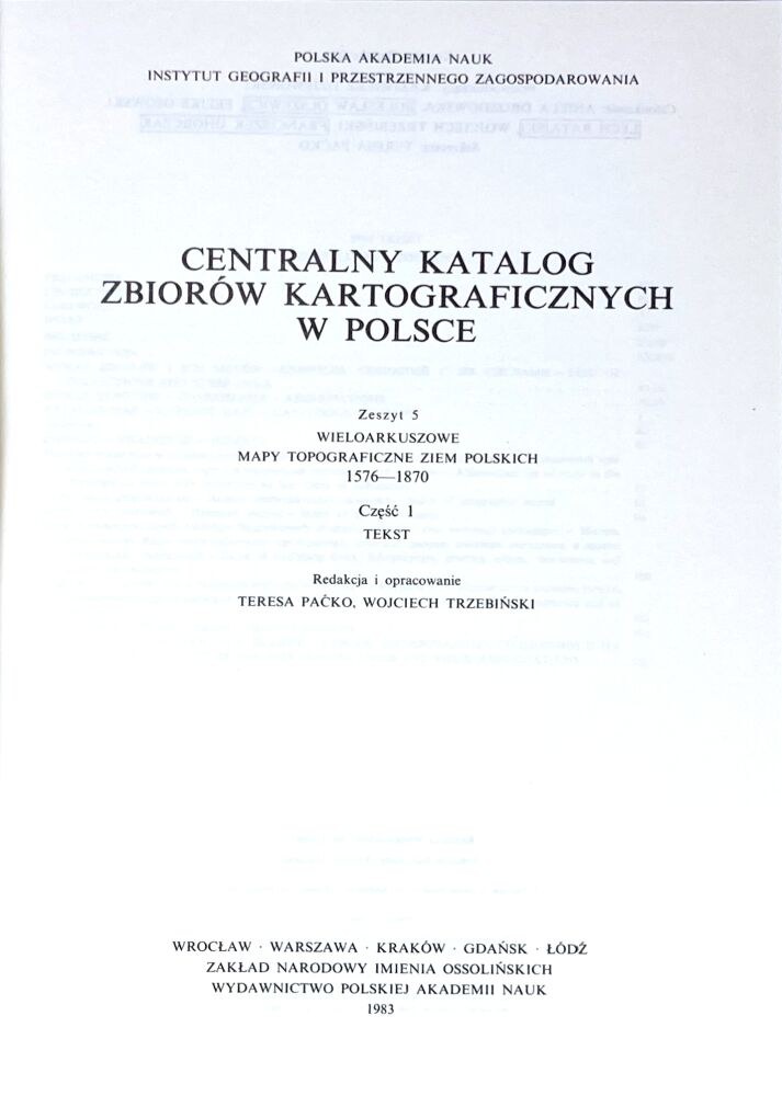 CENTRALNY KATALOG ZBIORÓW KARTOGRAFICZNYCH W POLSCE ZESZYT 5 CZ. 1-2 [komplet]