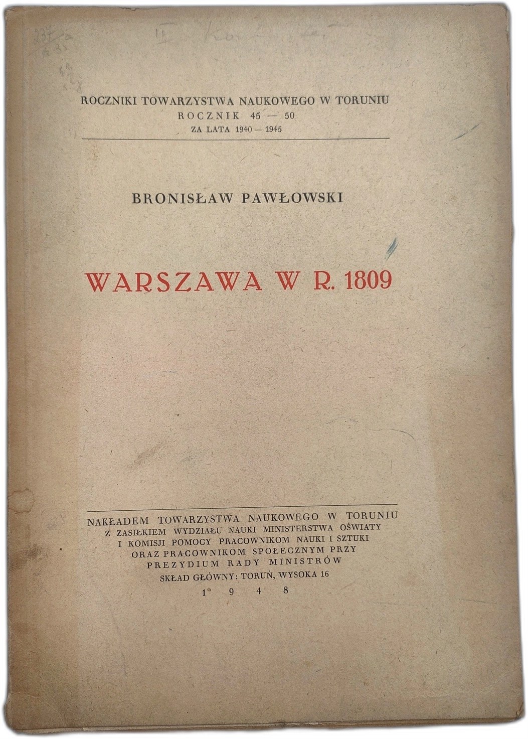 Pawłowski Bronisław - Warszawa w roku 1809 - Nakładem Tow. Nauk. w Toruniu 1948