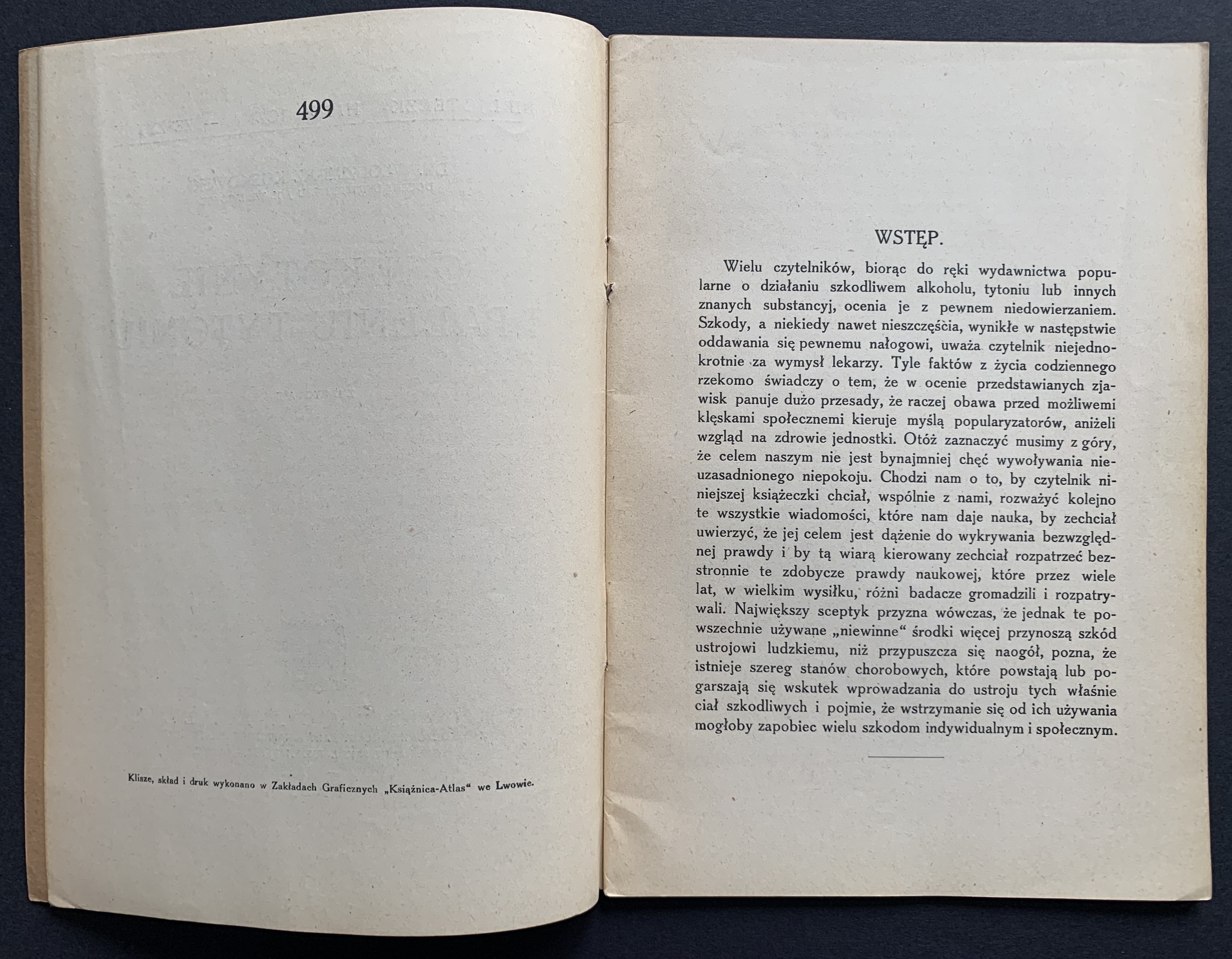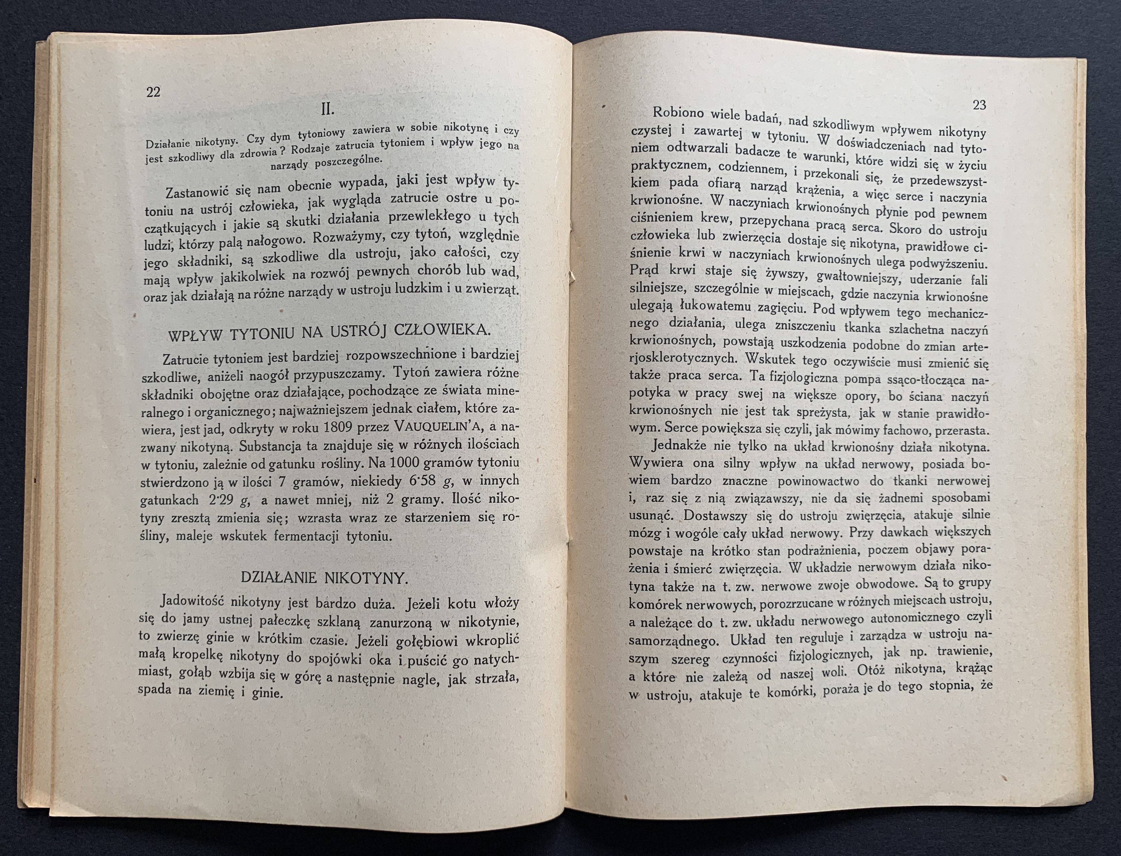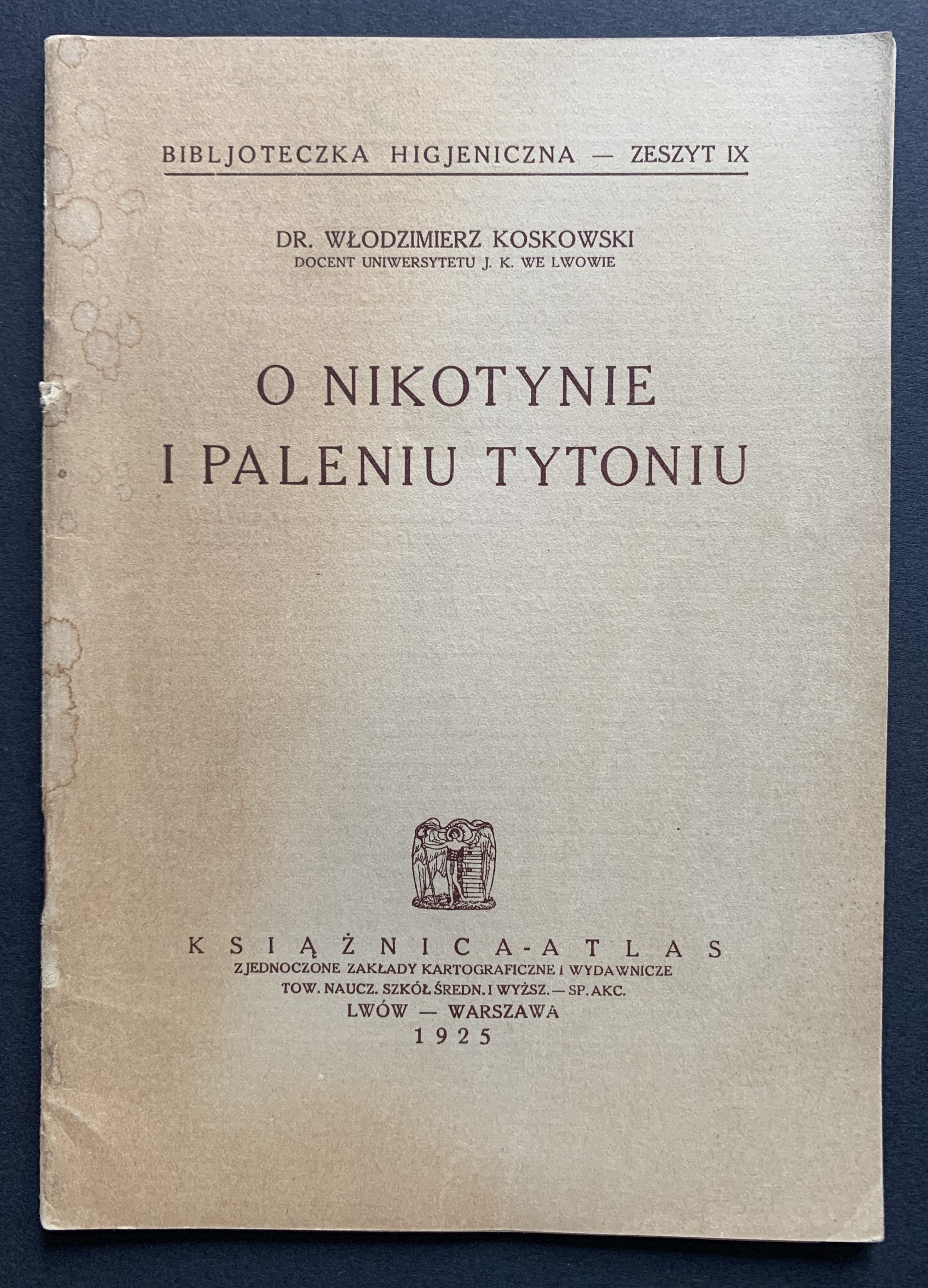 Włodzimierz Koskowski - O nikotynie i paleniu tytoniu. Lwów 1925 r. Wyd. Książnica-Atlas. Zeszyt IX Biblioteczki Higienicznej.