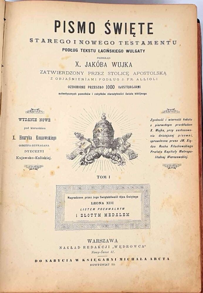 podług tekstu łacińskiego Wulgaty przekład Jakóba Wujka zatwierdzony przez Stolicę Apostolską z objaśnieniami podług J. Fr. Allioli