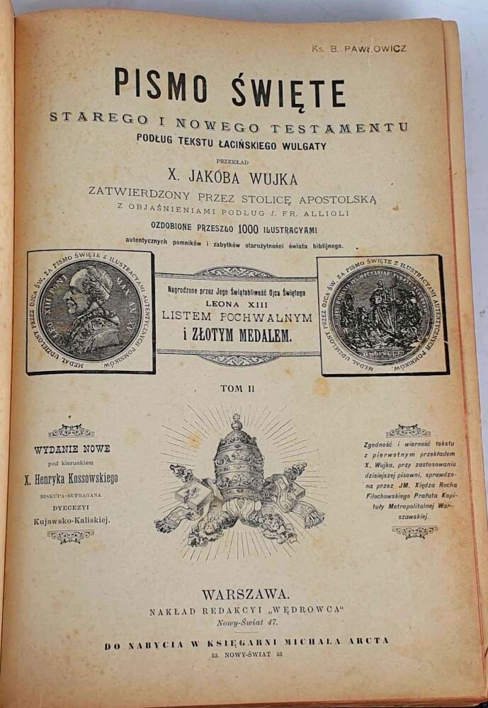 Pismo Święte w tłumaczeniu Jakuba Wujka, które ukaząło się sumptem redakcji "Wędrowca" w formie serii zeszytów dodawanych do pisma.