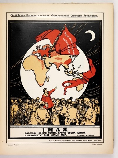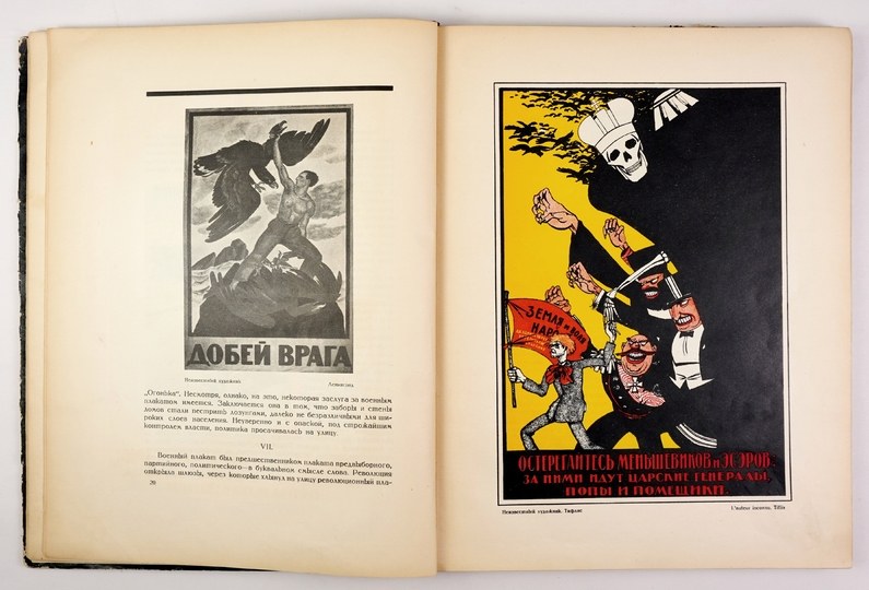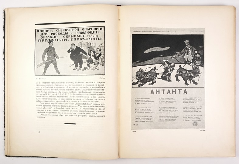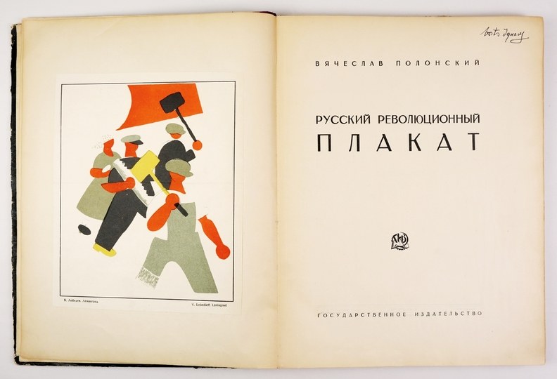 Otarcia grzbietu i okł., drobne zaplamienia wewnątrz. Podpis własn. Ignacego Witza, grafika, ilustratora, twórcy plakatów. Bogato ilustrowana praca poświęcona plakatowi w rewolucyjnej Rosji. Ilustracje barwne (dobrej jakości) na tablicach, czarno-białe w tekście. Zaprezentowano prace m.in. W. Lebiediewa, D. Moora, W. Deni, W. Majakowskiego, także antypolskie z wojny 1920. Na końcu spis plakatów propagandowych wydanych w l. 1918-1922 (lista obejmuje 854 prace).