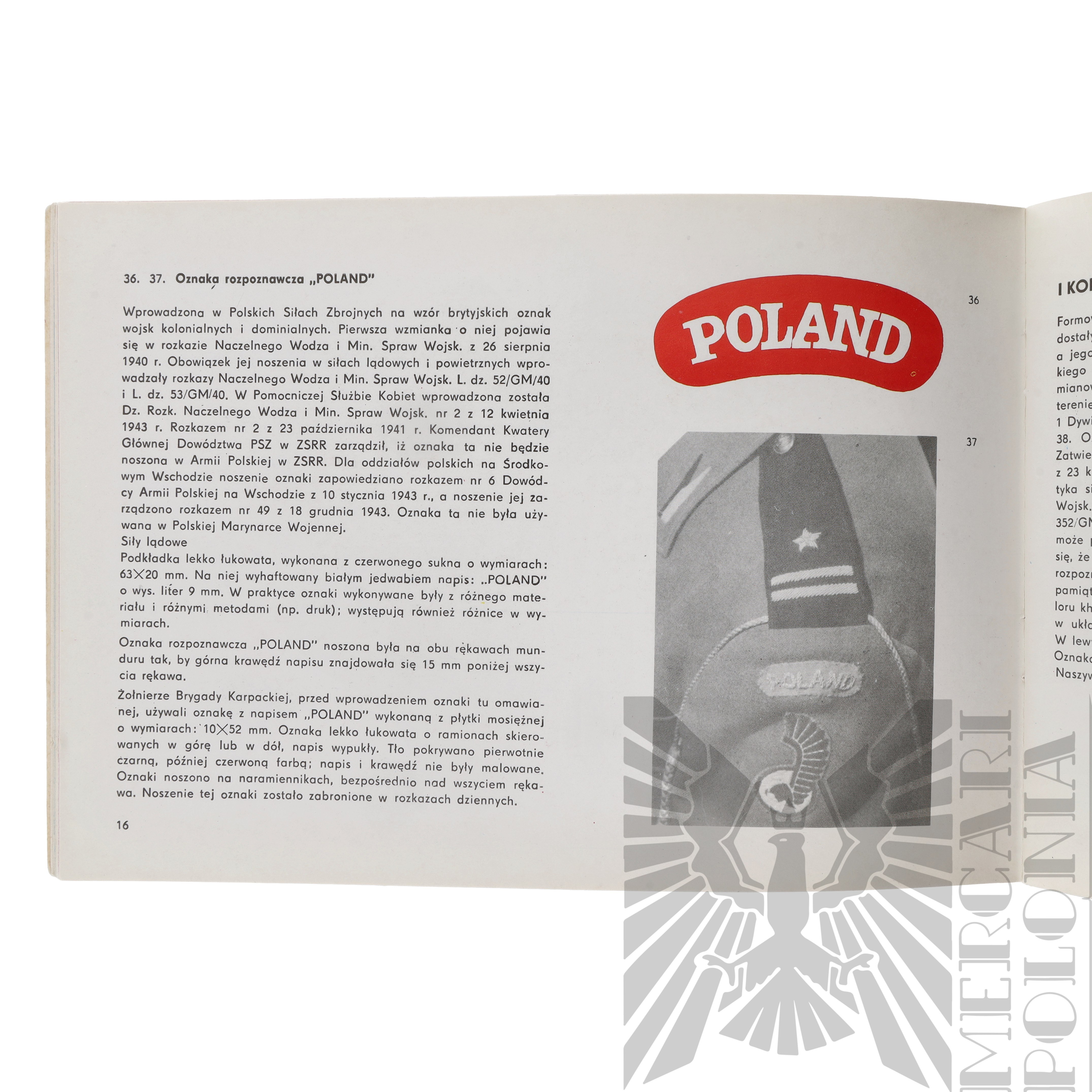Broszura “ Oznaki i Odznaki Polskich Sił Zbrojnych na Zachodzie” przedstawiająca odznaki używane w Polskich Siłach Zbrojnych na Zachodzie.