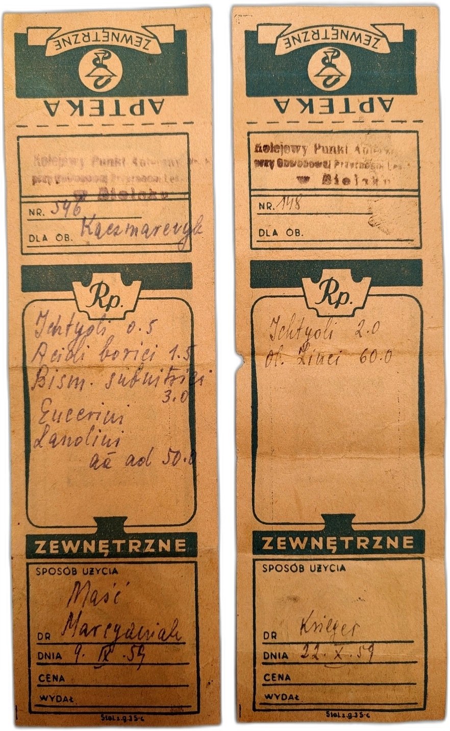 Recepta ( para), Kolejowy Punkt Apteczny, Bielsko Biała , lata 50 te XX wieku