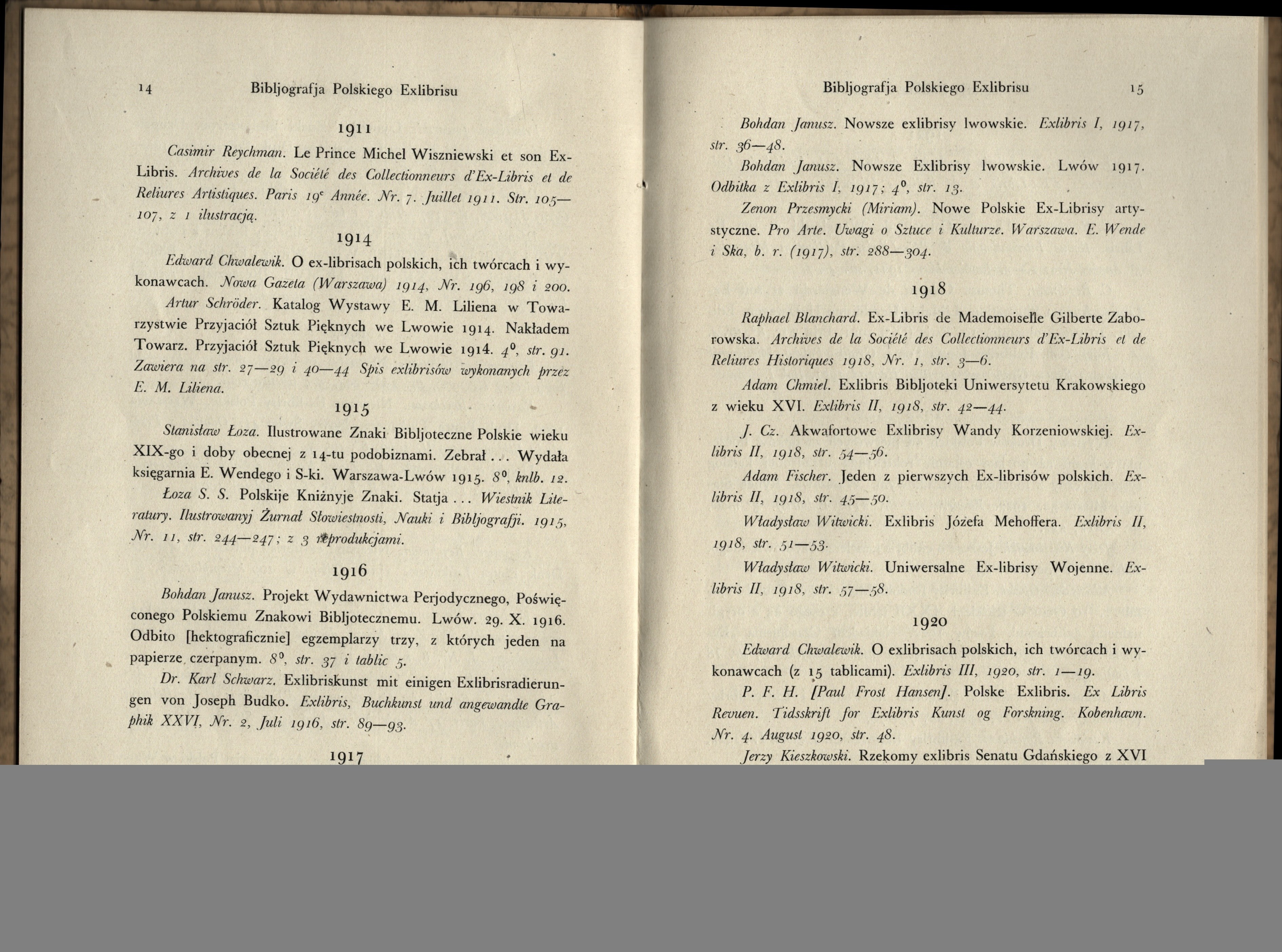 REYCHMAN Kazimierz - Bibliografia Polskiego Exlibrisu. Wydanie II. Kraków 1932. Wydawnictwo Towarzystwa Miłośników Exlibrisów w Warszawie.