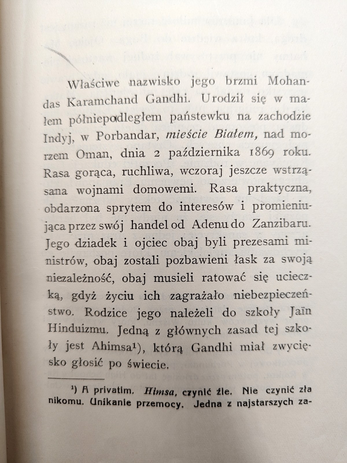 Mahatma Gandhi (1869 -1948) – indyjski prawnik, filozof, polityk i mąż stanu, jeden z twórców współczesnej państwowości indyjskiej i propagator pacyfizmu jako środka nacisku politycznego.