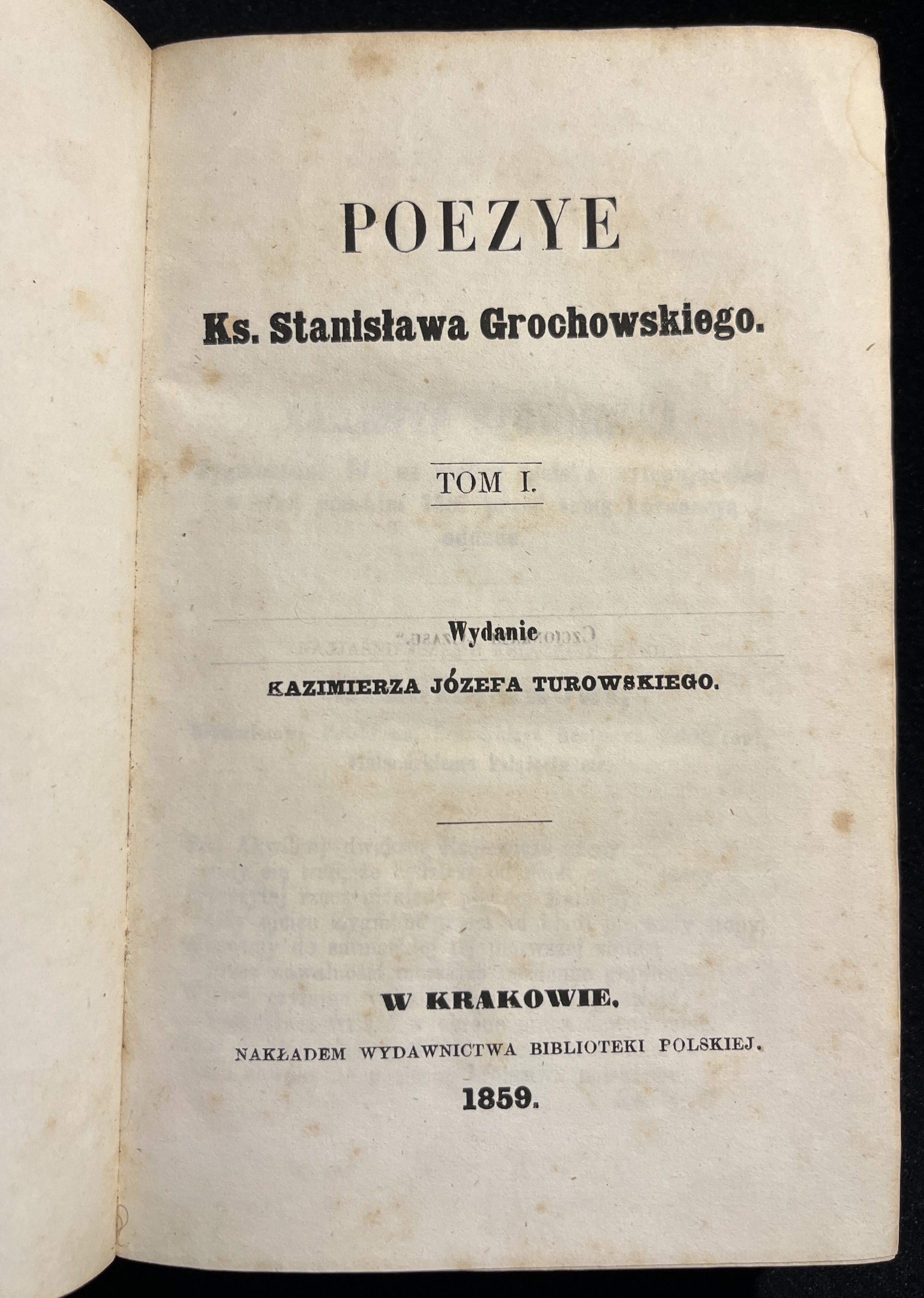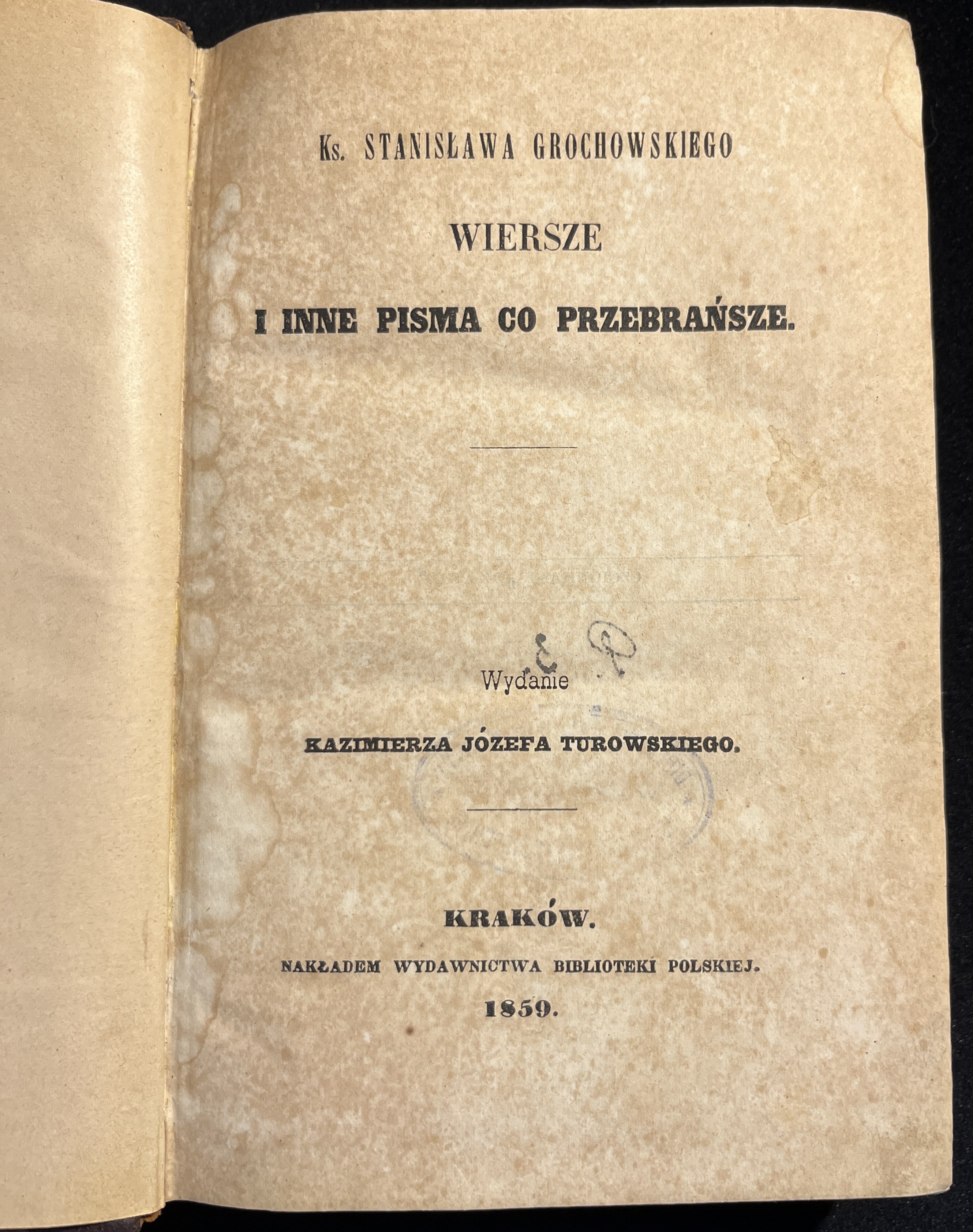 KS. STANISŁAWA GROCHOWSKIEGO - WIERSZE I INNE PISMA CO PRZEBRAŃSZE [1859]