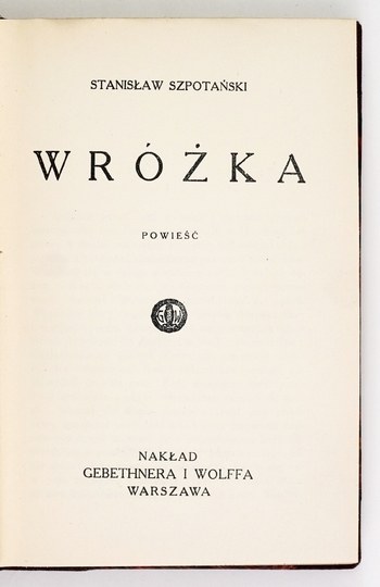 SZPOTAŃSKI Stanisław - Wróżka. Powieść. Warszawa 1931. Nakł. Gebethnera i Wolffa. 16d, s. 283, [1], IV. opr. ppł. z zach. okł. brosz.