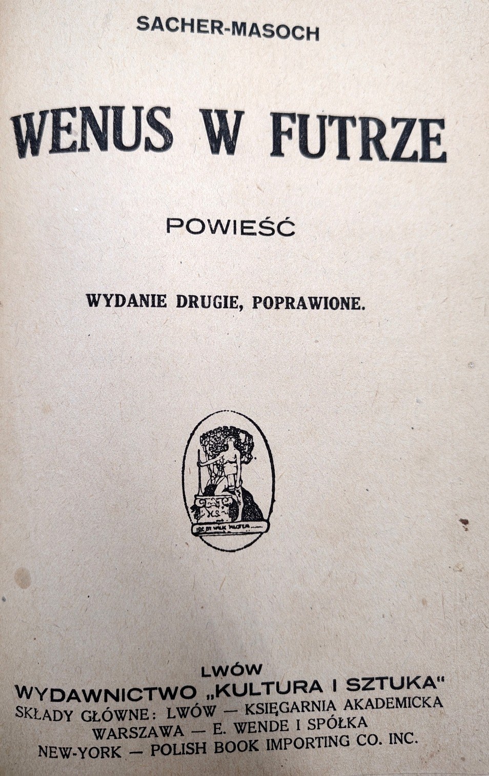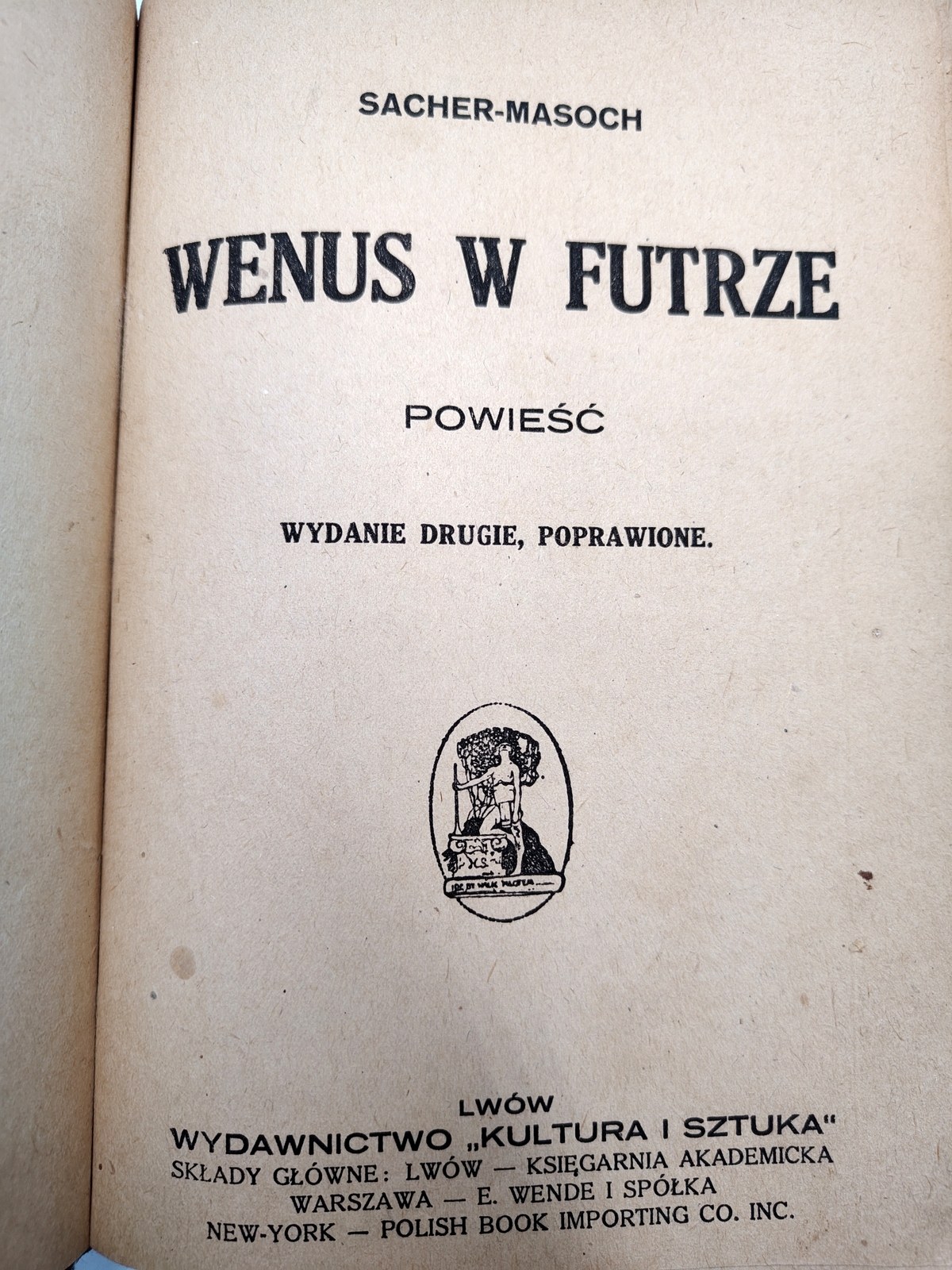 " Wydanie pierwsze ukazało się w 1913 roku, słynna powieść austriackiego pisarza Leopolda von Sacher - Masoch, od którego nazwiska pochodzi pojęcie „masochizm”, opisująca seksualną podnietę wywołaną cierpieniem i okrucieństwem ze strony pięknej kobiety."