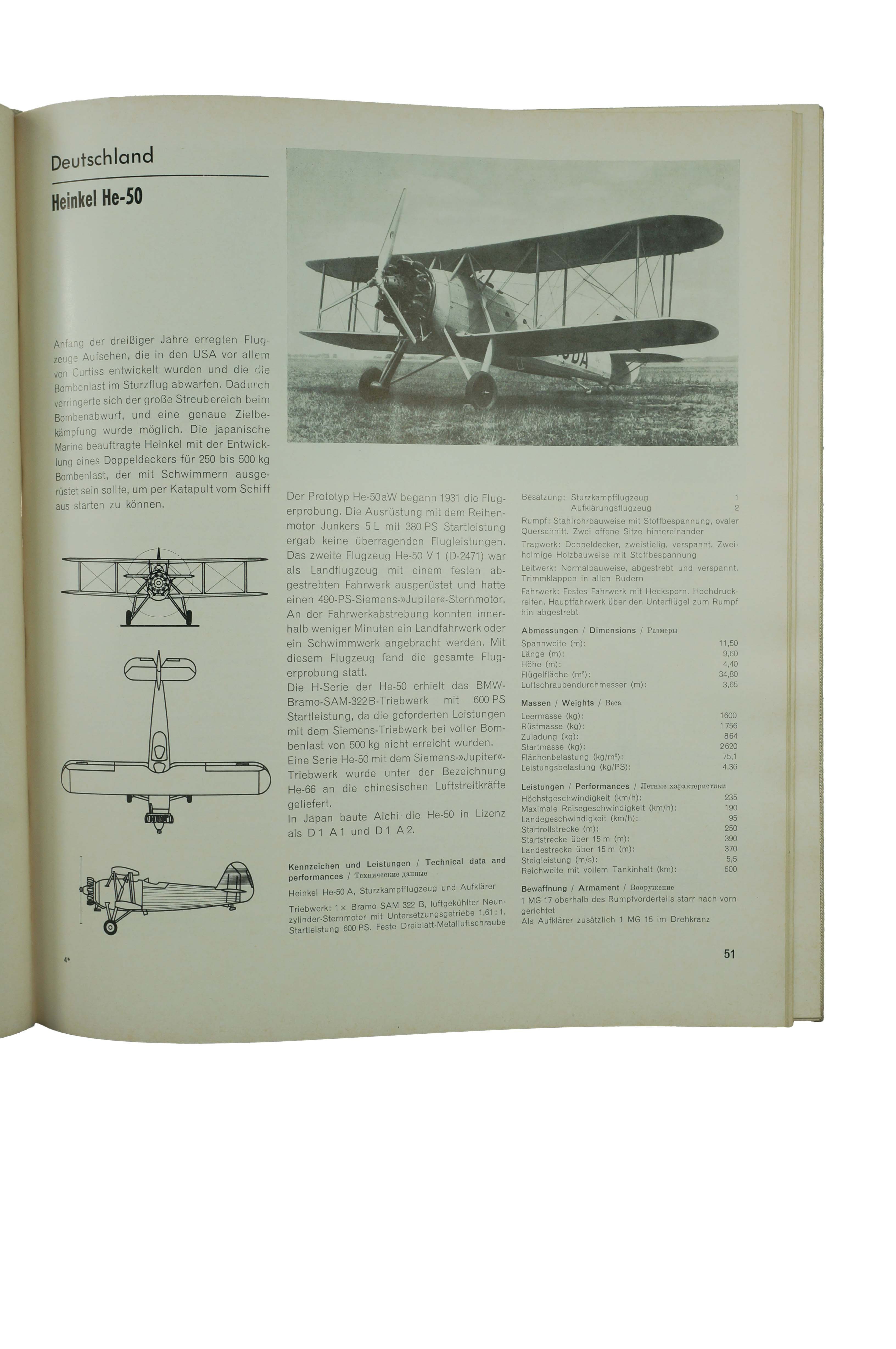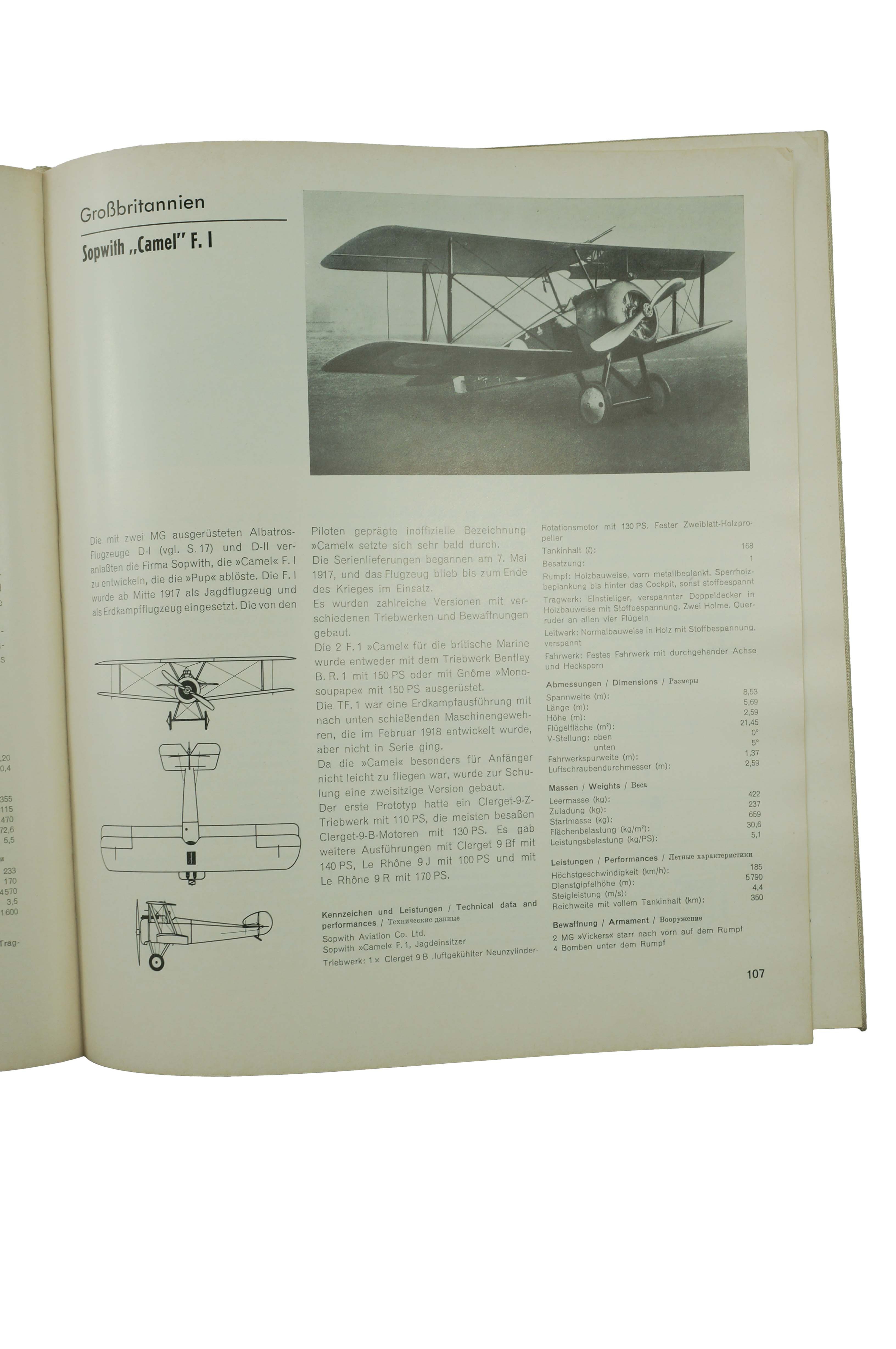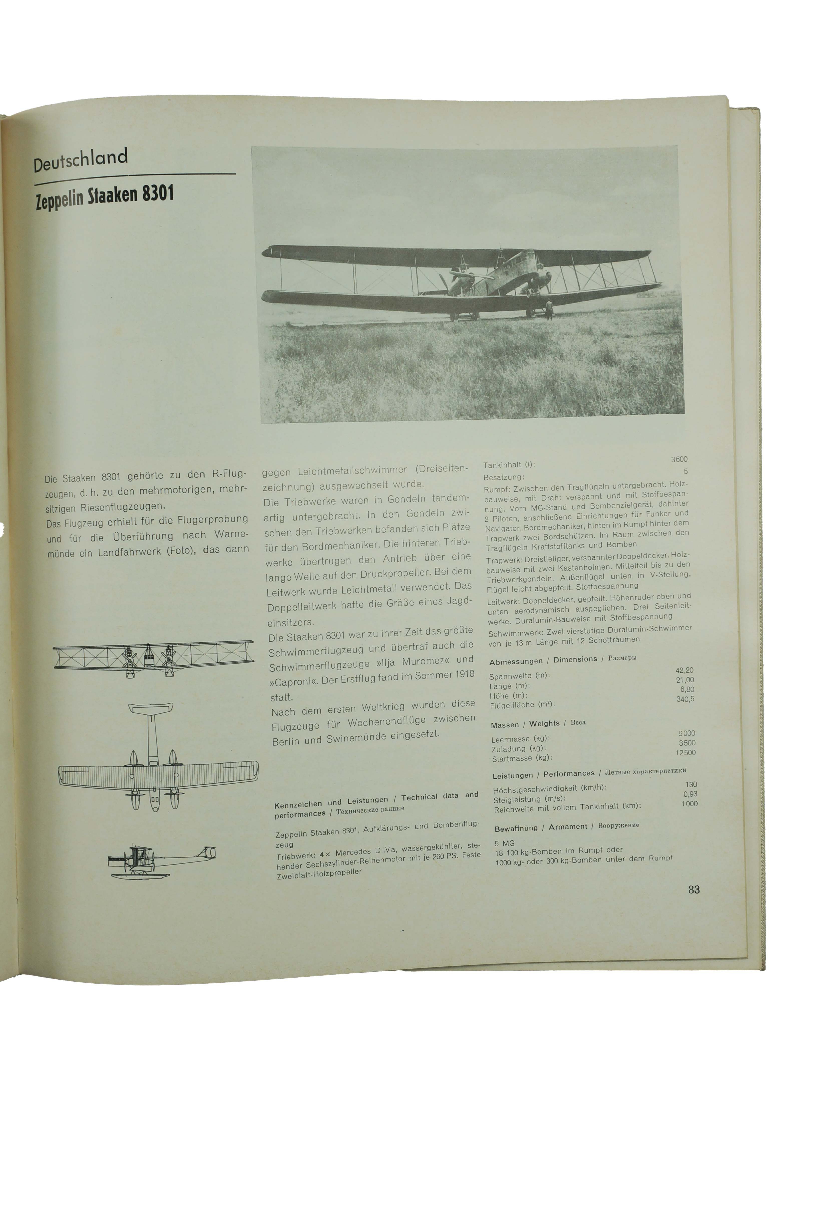 album pełen cz.-b. fotografii samolotów wraz z opisami [historia] i danymi technicznymi. Przedstawiono samoloty z Belgii, Czechosłowacji, Niemiec, Francji, Wielkiej Brytanii, Włoch, Holandii, Austrii, Polski, Rosji, Związku Radzieckiego i USA