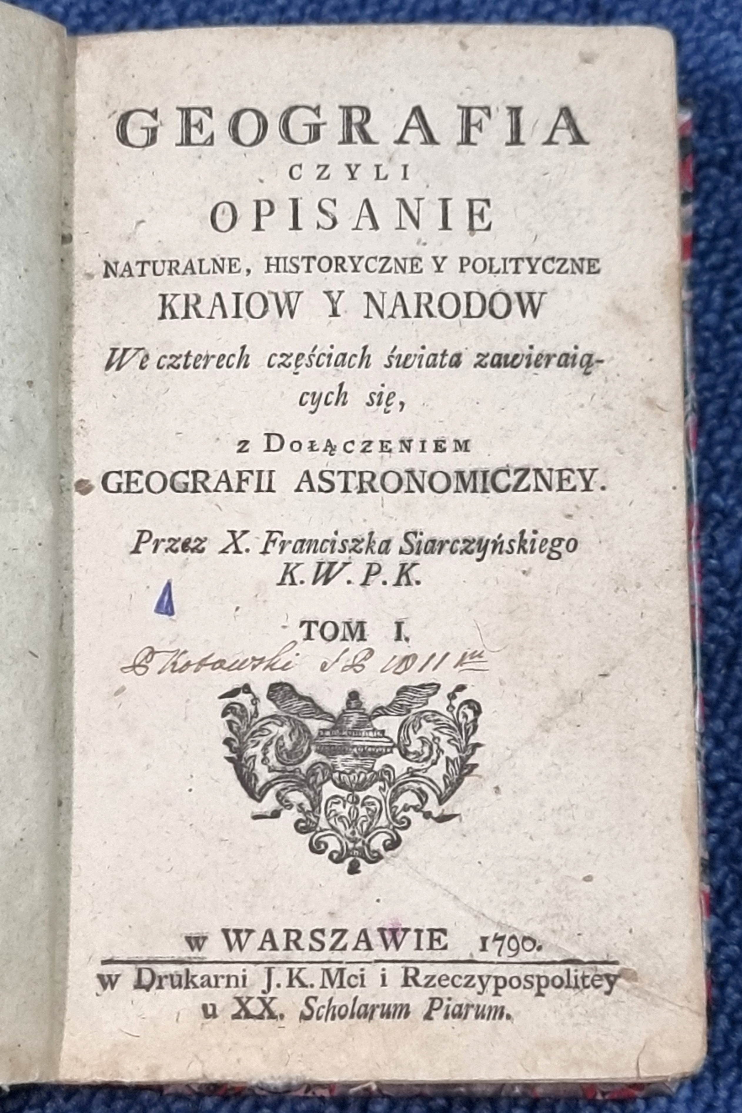 Geografia czyli opisanie naturalne, historyczne i polityczne krajów i narodów w czterech częściach świata zawierające się z dołączeniem geografii astronomicznej przez Franciszka Siarczyńskiego