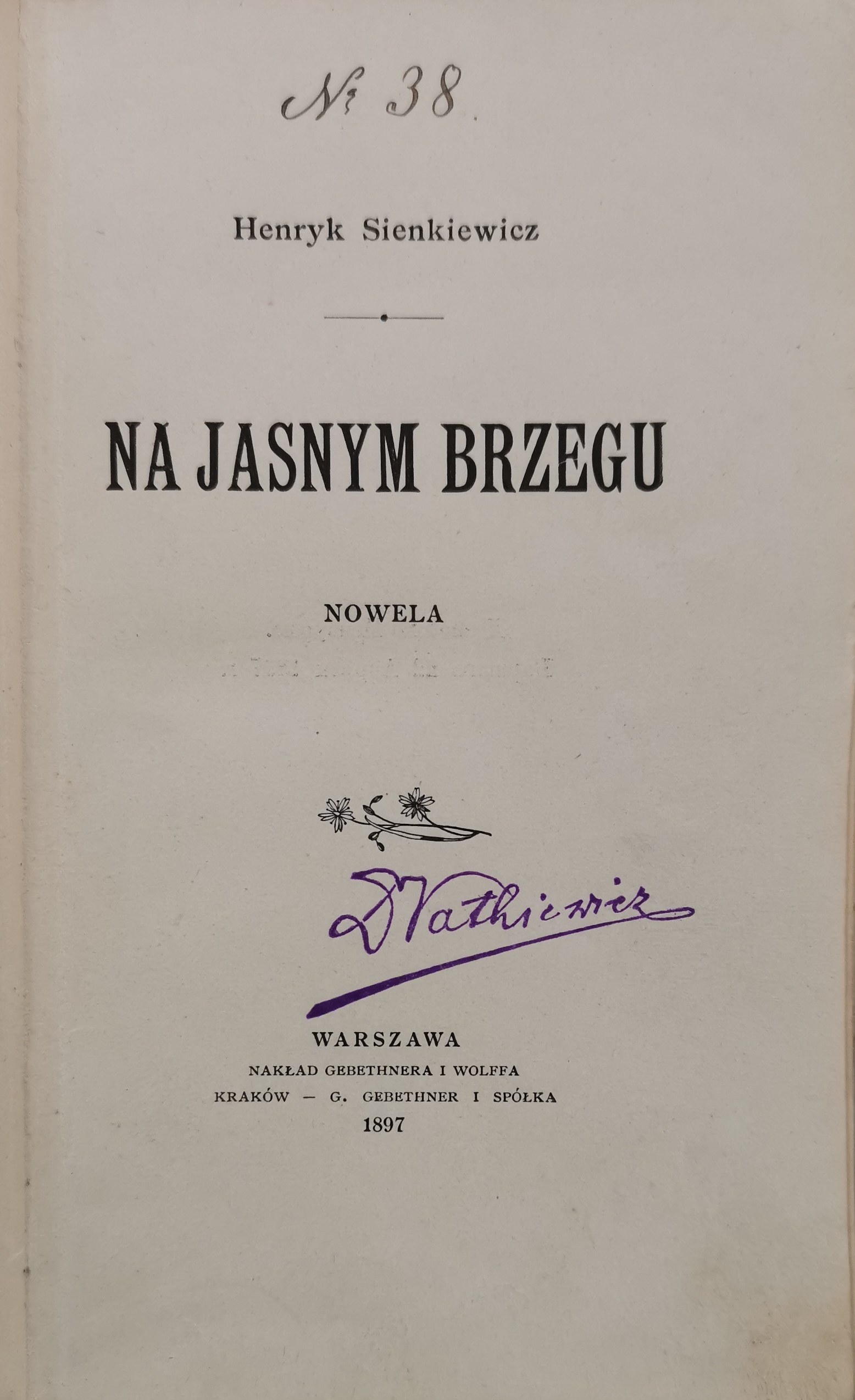 Wpis własnościowy na wyklejce i str. tyt.: DJatkiewicz (?); oznaczenie katalogowe: No 38