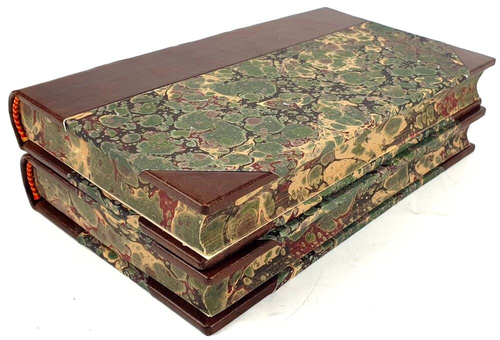TWARDA OPRAWA PÓŁSKÓREK WSPÓŁCZESNY, GRZBIET Z WYPUKŁYMI ZWIĘZAMI, TŁOCZENIAMI I ZŁOCENIAMI, KARTON MARMORYZOWANY, OBCIĘCIA KART MARMORYZOWANE TYM SAMYM WZOREM
