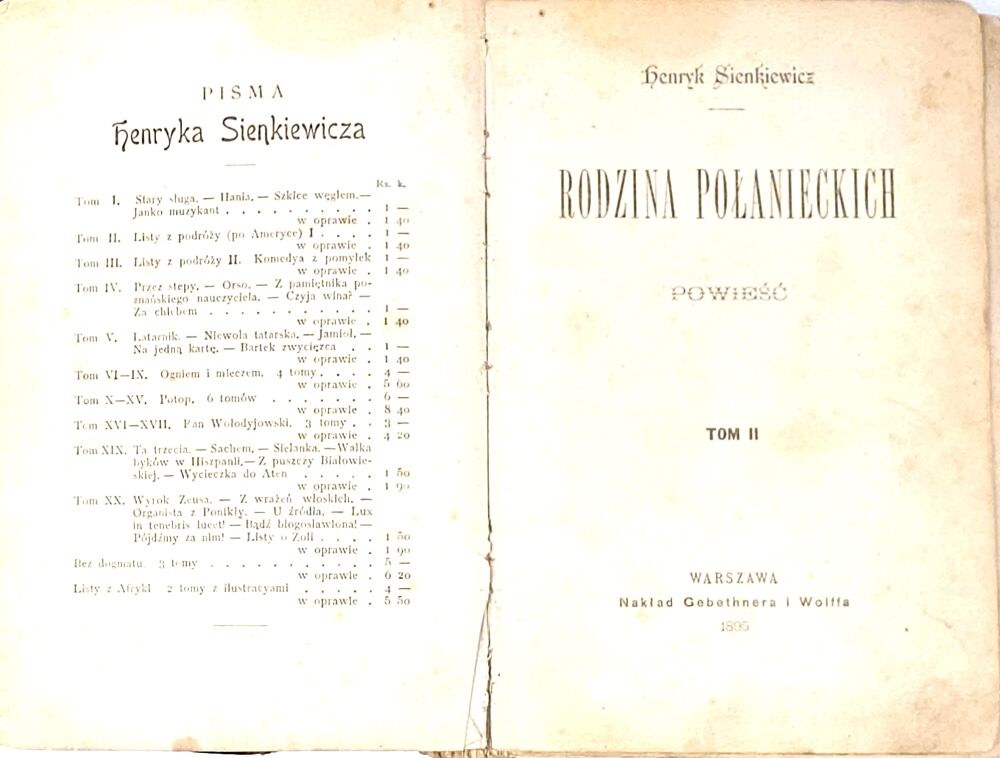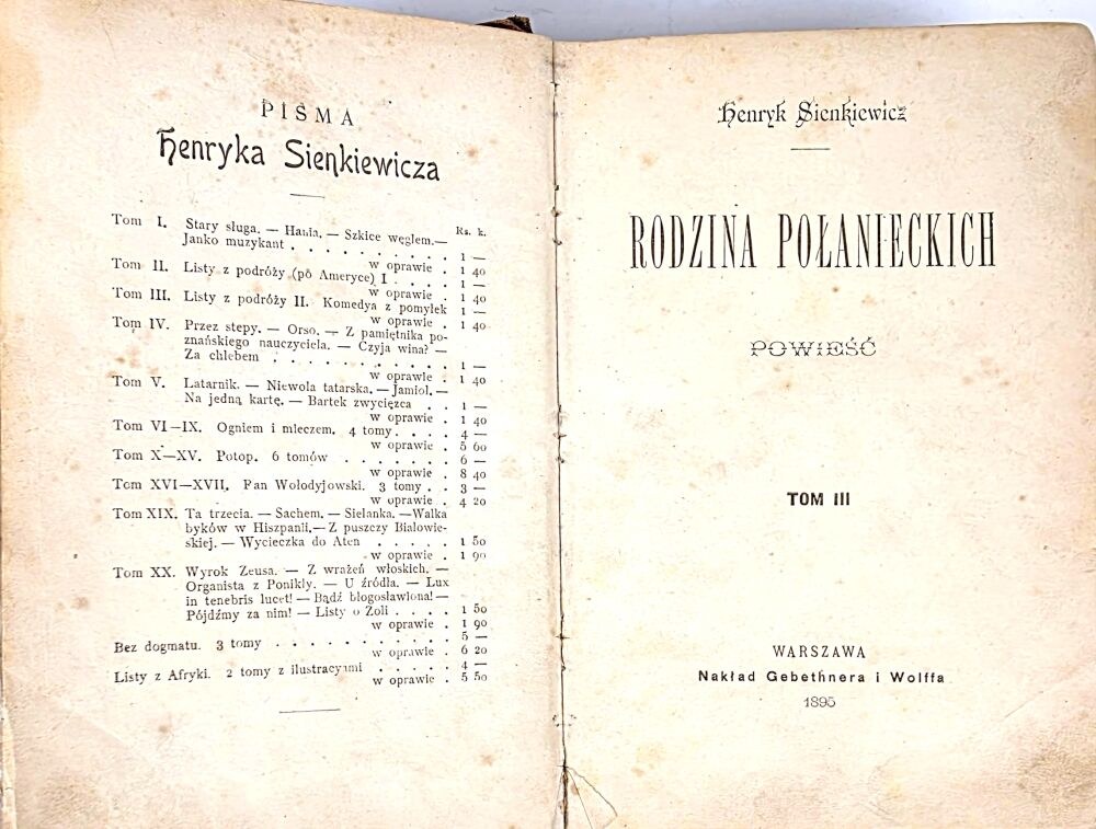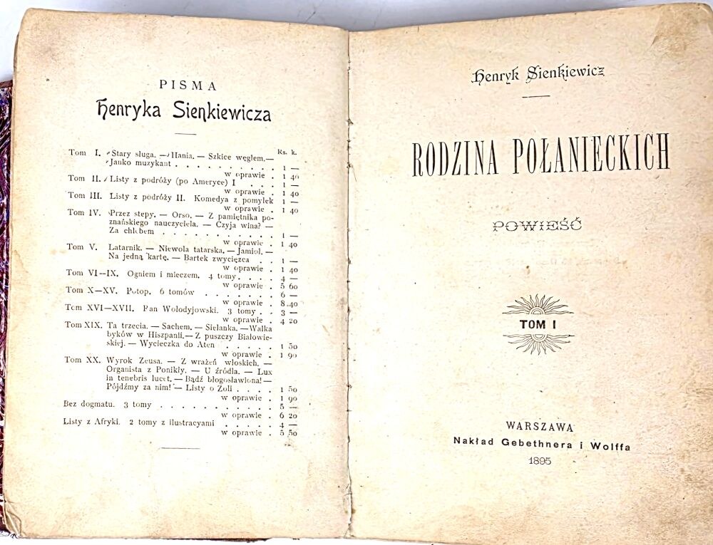 SIENKIEWICZ - RODZINA POŁANIECKICH t.1-3 (komplet) wydanie 1 z 1895r.