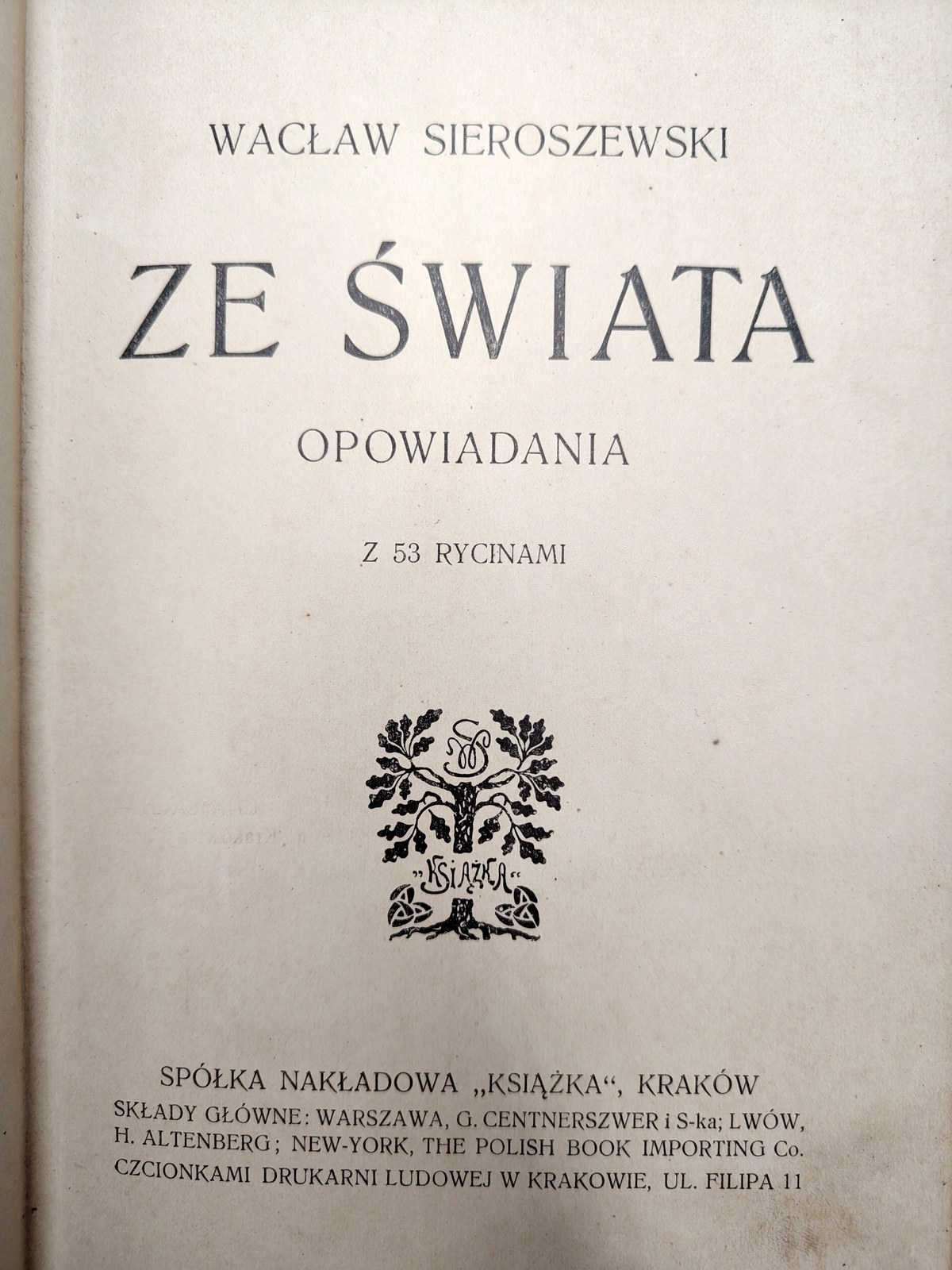 Sieroszewski Wacław - Ze Świata - opowiadania z 53 rycinami, Kraków 1909 - podpis autora, [ Podróże, myślistwo, Syberia ]