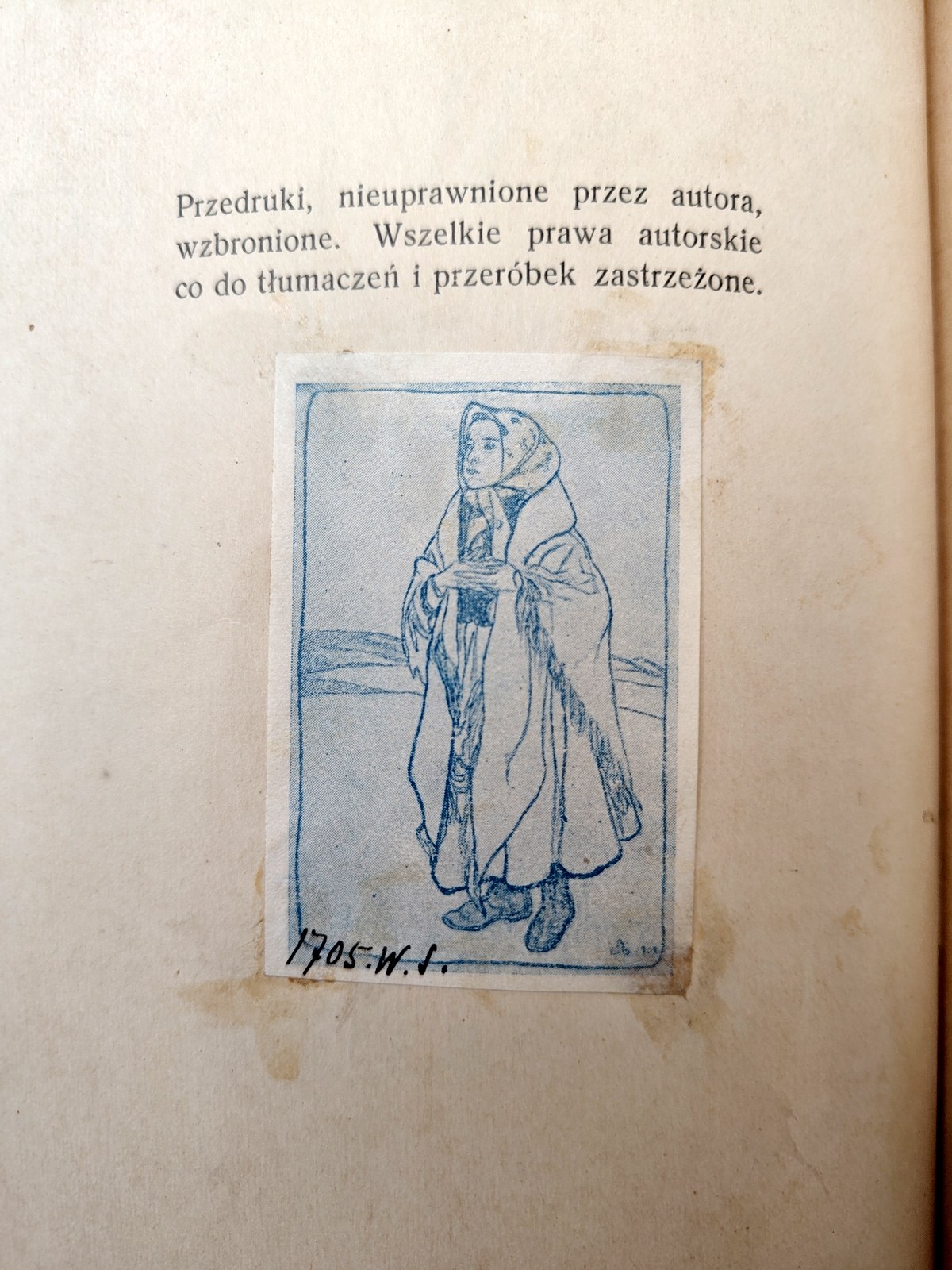 Wydanie I ,  na odwrocie strony tyt. naklejka ochronna z ręcznie wpisanym numerem egzemplarza (1705) i inicjałami  autora.