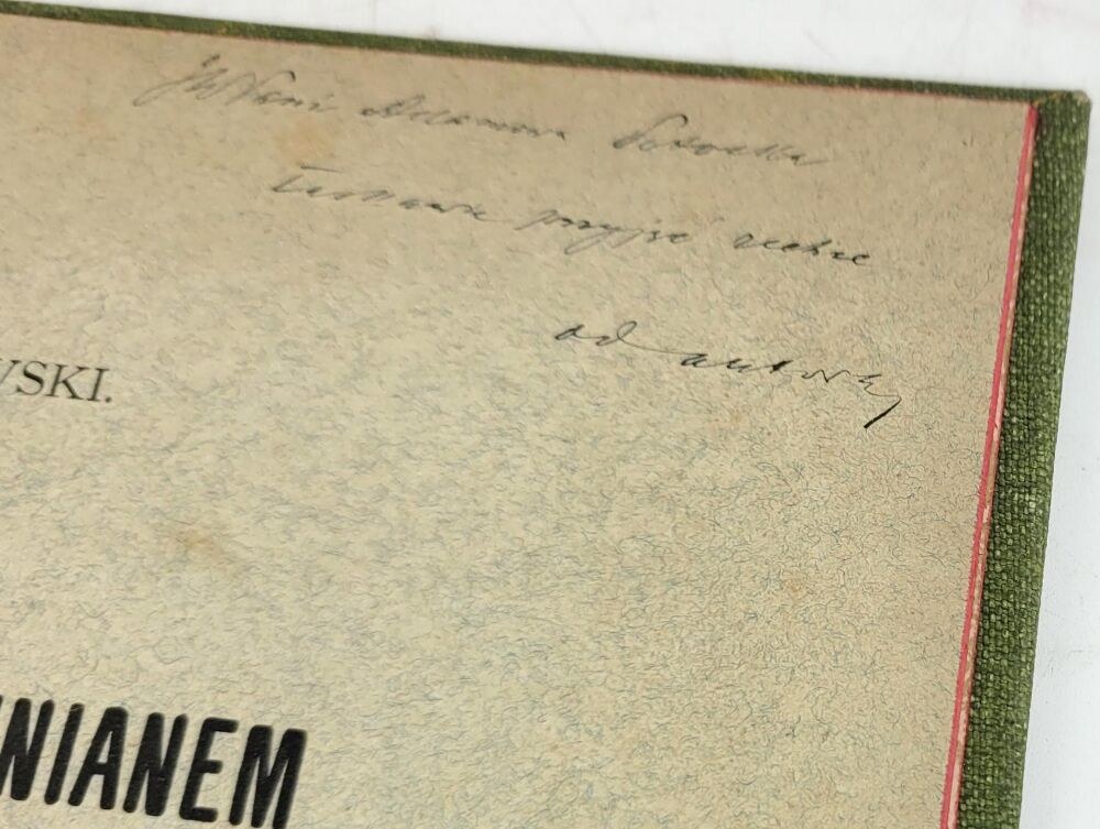 Dedykacja opatrzona podpisem Autora na miękkiej okładce broszurowej: