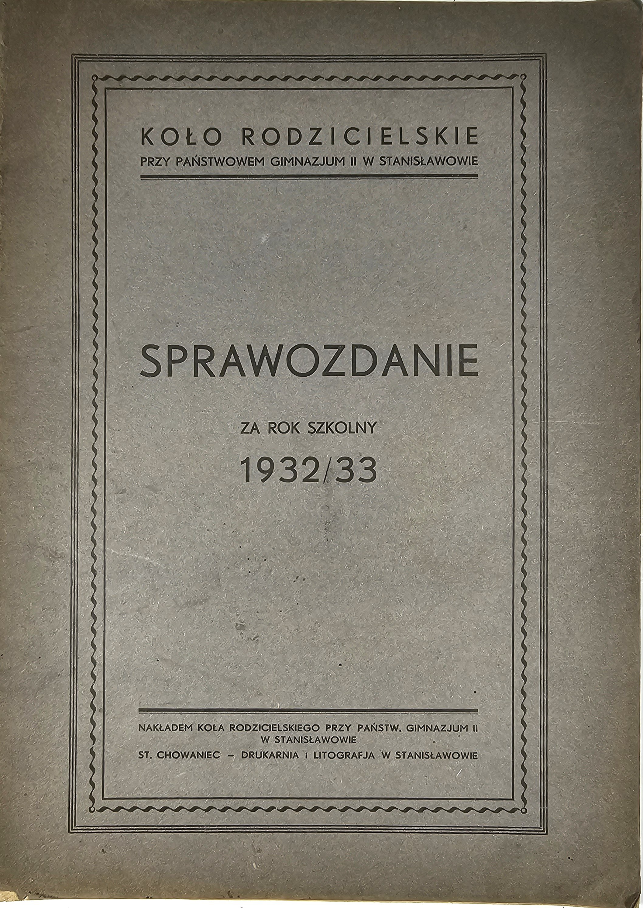 St. Chowaniec. Druk. i Litografia w Stanisławowie. 22.5 cm, s. 27, okł. oryg. Stan dobry.