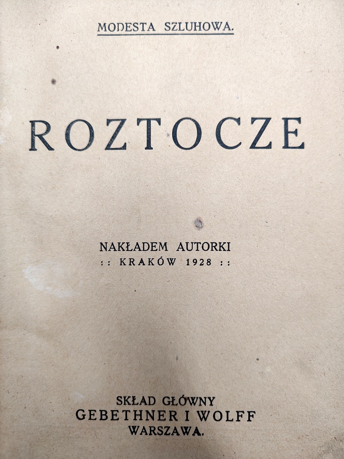 Szluhowa Modesta - Roztocze - Kraków 1928 [ Pierwsze Wydanie ]