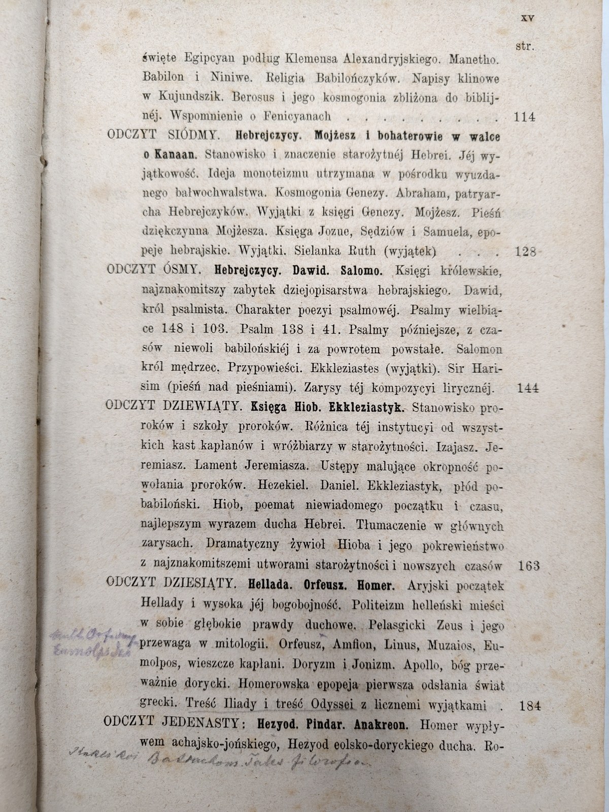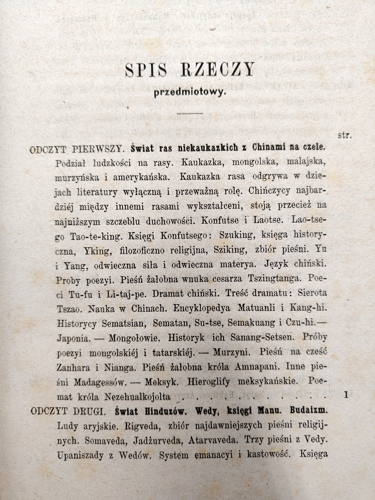 Zawiera : Chiny i rasy niekaukaskie, Indye, Persja, Babilon, Assyrya, Egipt, Fenicya, Hebreja, Hellada, Rzym, Keltowie, Germanowie, Słowianie, Arabowie i Turcy, Żydzi w rozproszeniu.