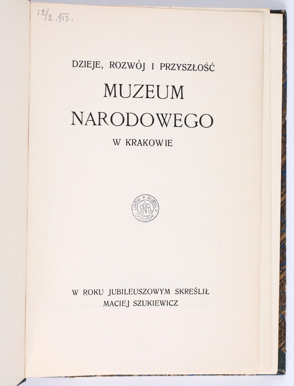 SZUKIEWICZ Maciej - Dzieje, rozwój i przyszłość Muzeum Narodowego w Krakowie. Kraków 1909. Czcionkami Drukarni "Czasu" [z biblioteki Rudolfa Mękickiego]