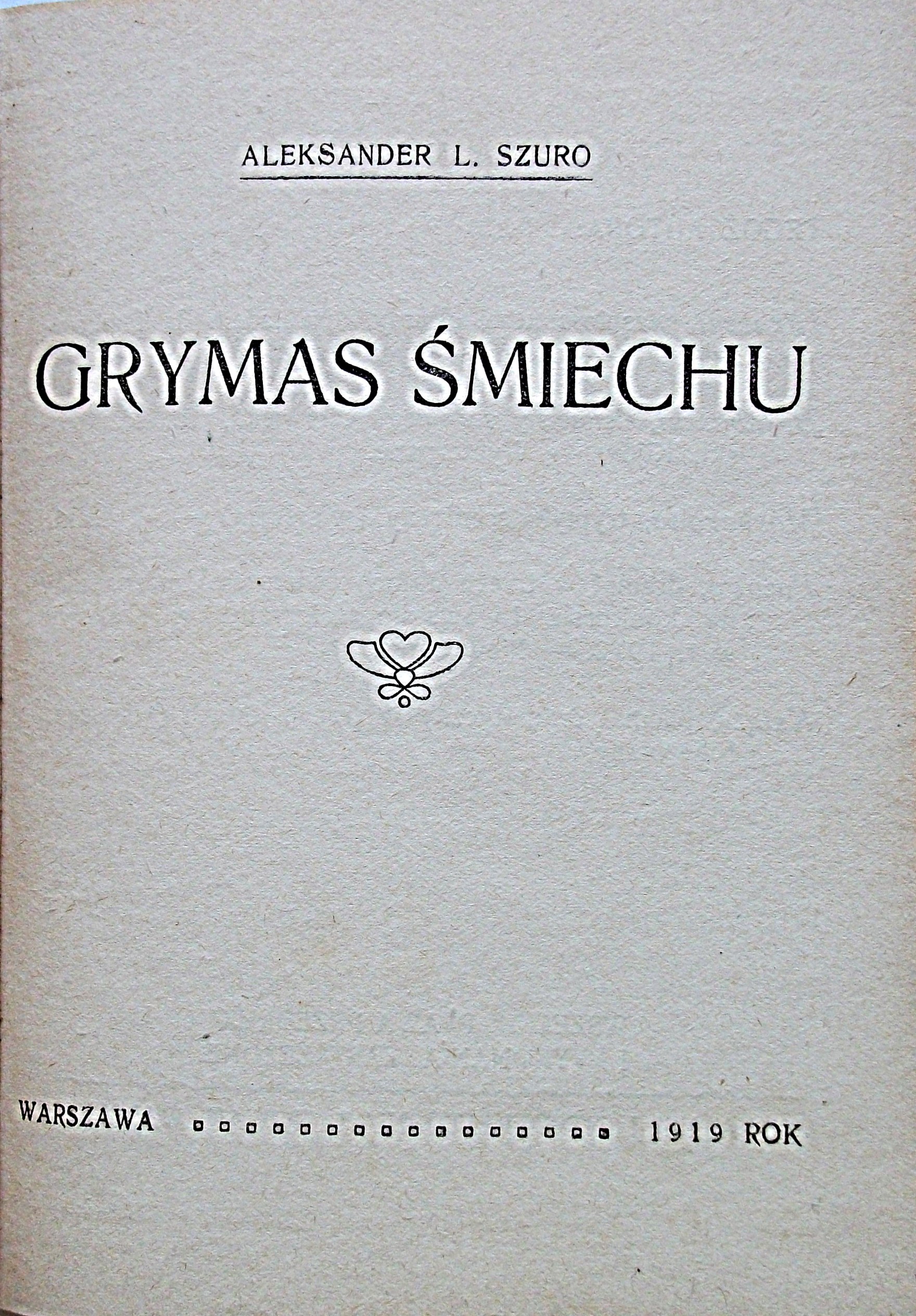 SZURO ALEKSANDER L. Grymas śmiechu. W-wa 1919. Drukarnia i introligatornia L. Nowak. Format 11/15 cm. s. 126...