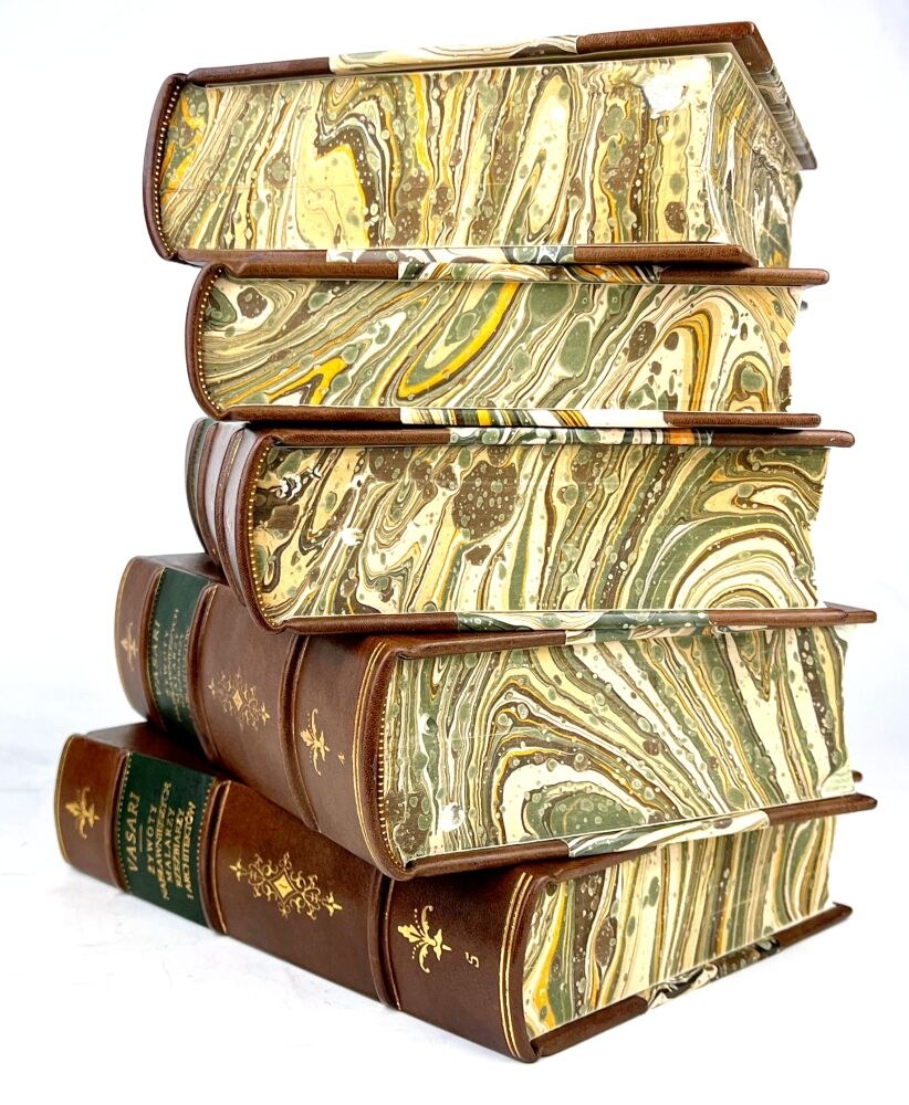 TWARDA OPRAWA PÓŁSKÓREK WSPÓŁCZESNY. GRZBIETY Z WYPUKŁYMI ZWIĘZAMI, TŁOCZENIAMI I ZŁOCENIAMI. KARTON MARMORYZOWANY. OBCIĘCIA KART MARMORYZOWANE TYM SAMYM WZOREM
