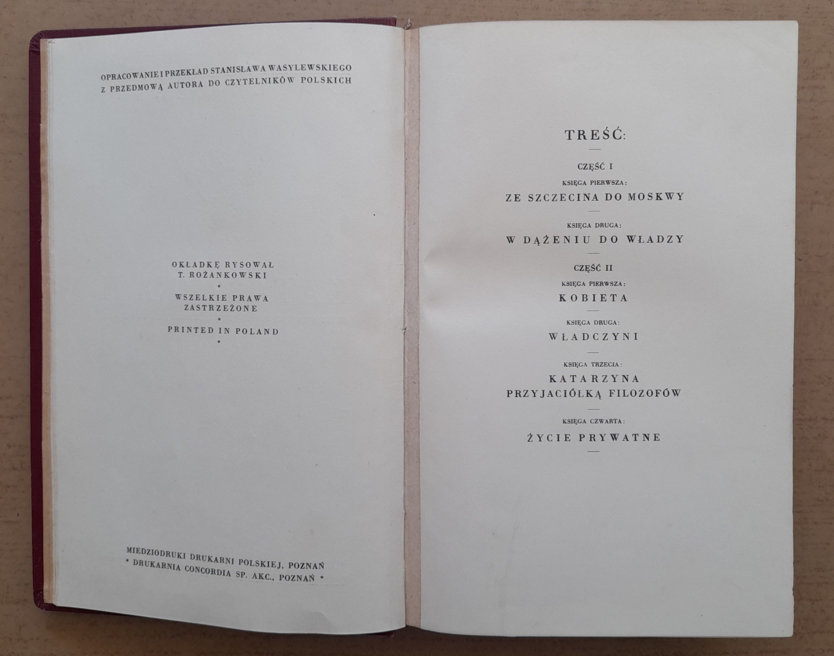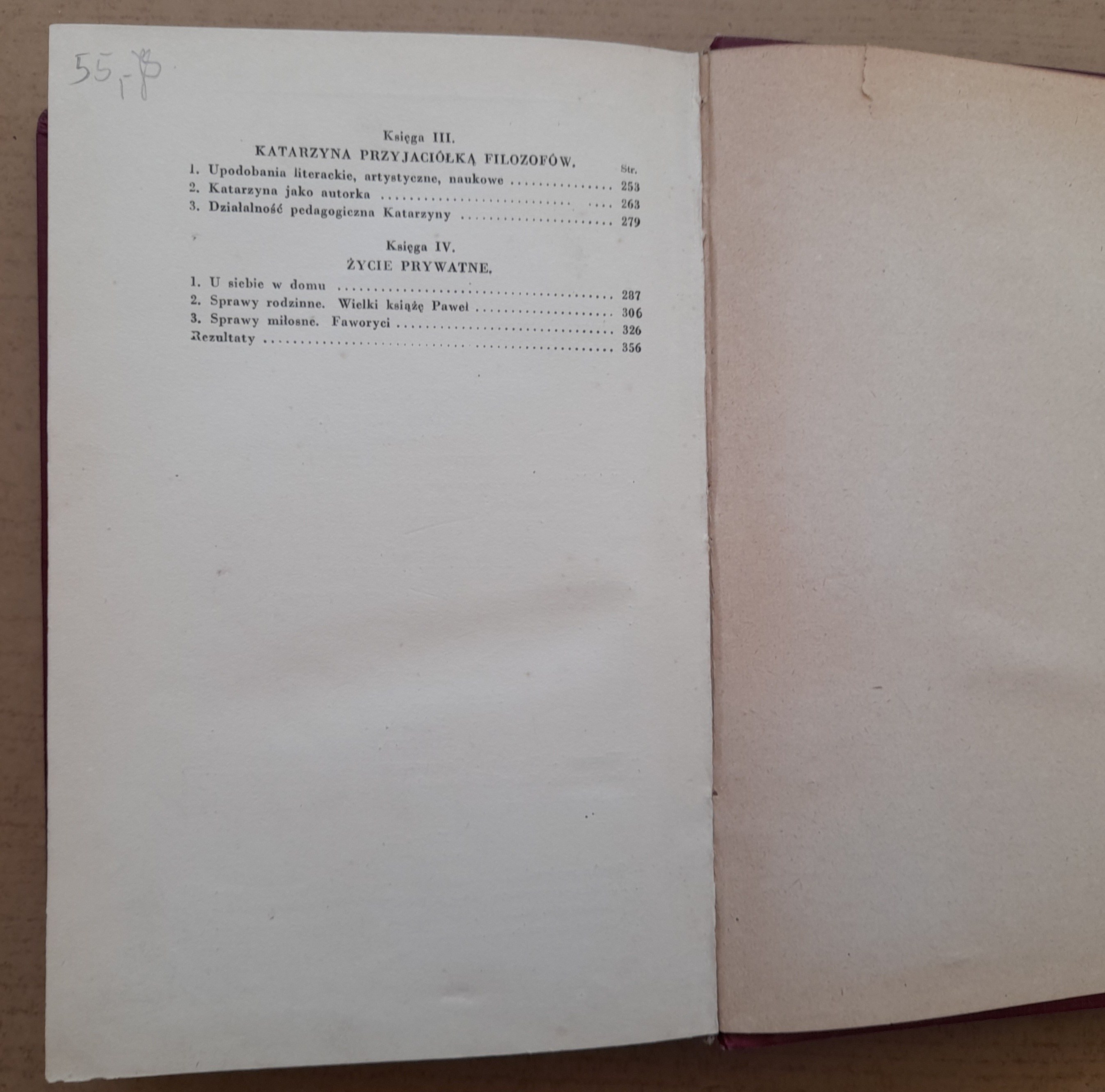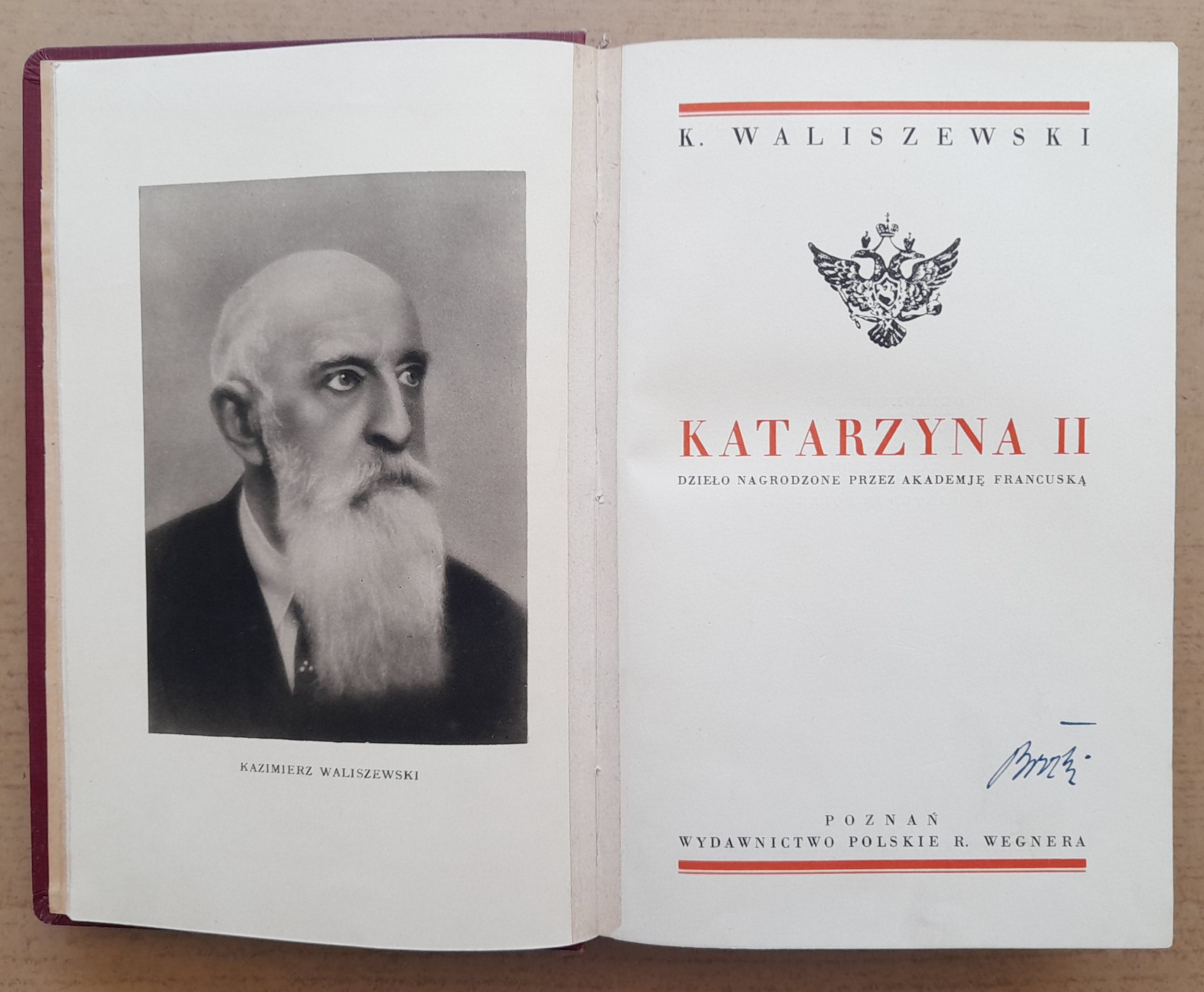 Waliszewski K.: Katarzyna II, Poznań br. Wyd. Polskie R. Wegnera, str. XV, 365, nlb. 3, opr. pł z epoki 23 cm.