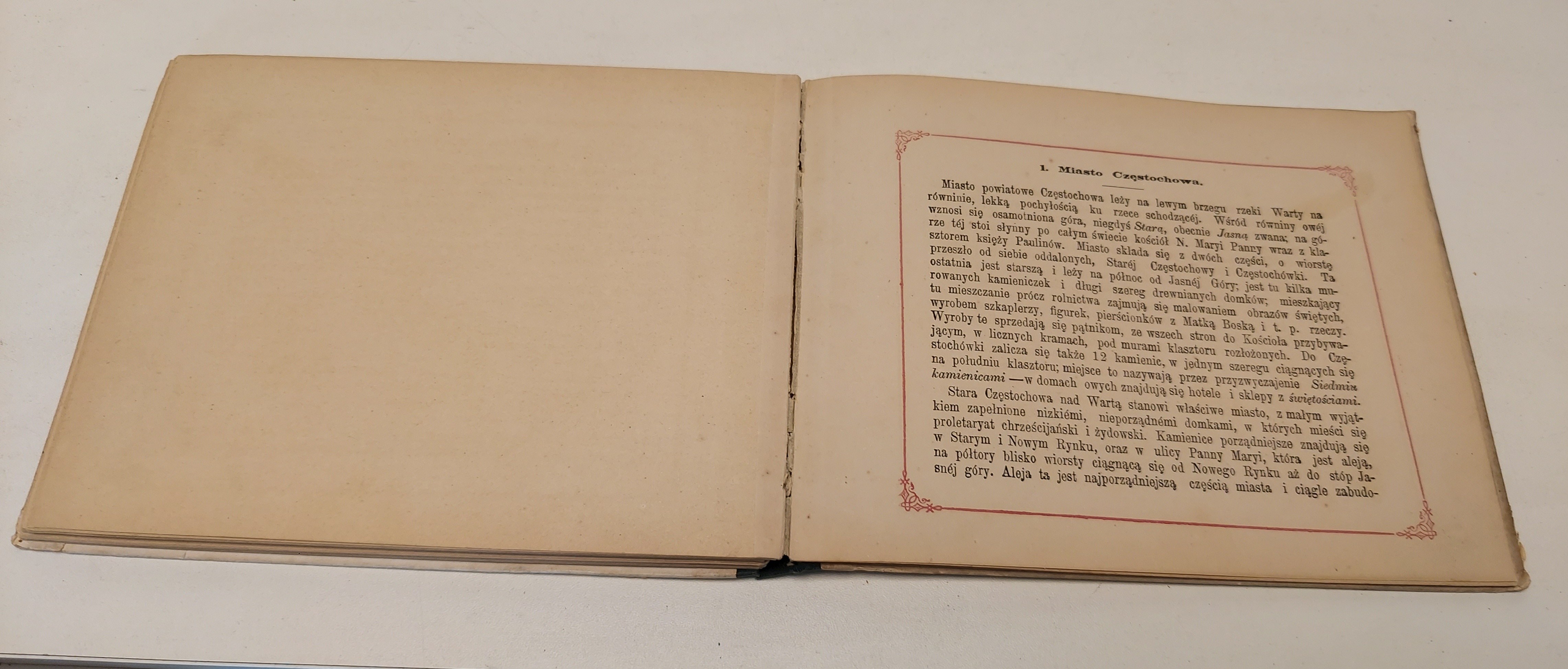 Widoki rysował z natury Władysław Dmóchowski. Opis ułożył Bronisław Grabowski. Rytowano z Drzeworytni Warszawskiej. Wykonano w zakładzie Typo-litograficznym Wil.Kohna i A. Oderfelda w Częstochowie. [1876]. 21 kart ilustracji. Wym.16x20cm. Oprawa twarda(wytarcia, przybrudzenia). Przybrudzenia w środku, wpis-podpis na karcie tyt. .