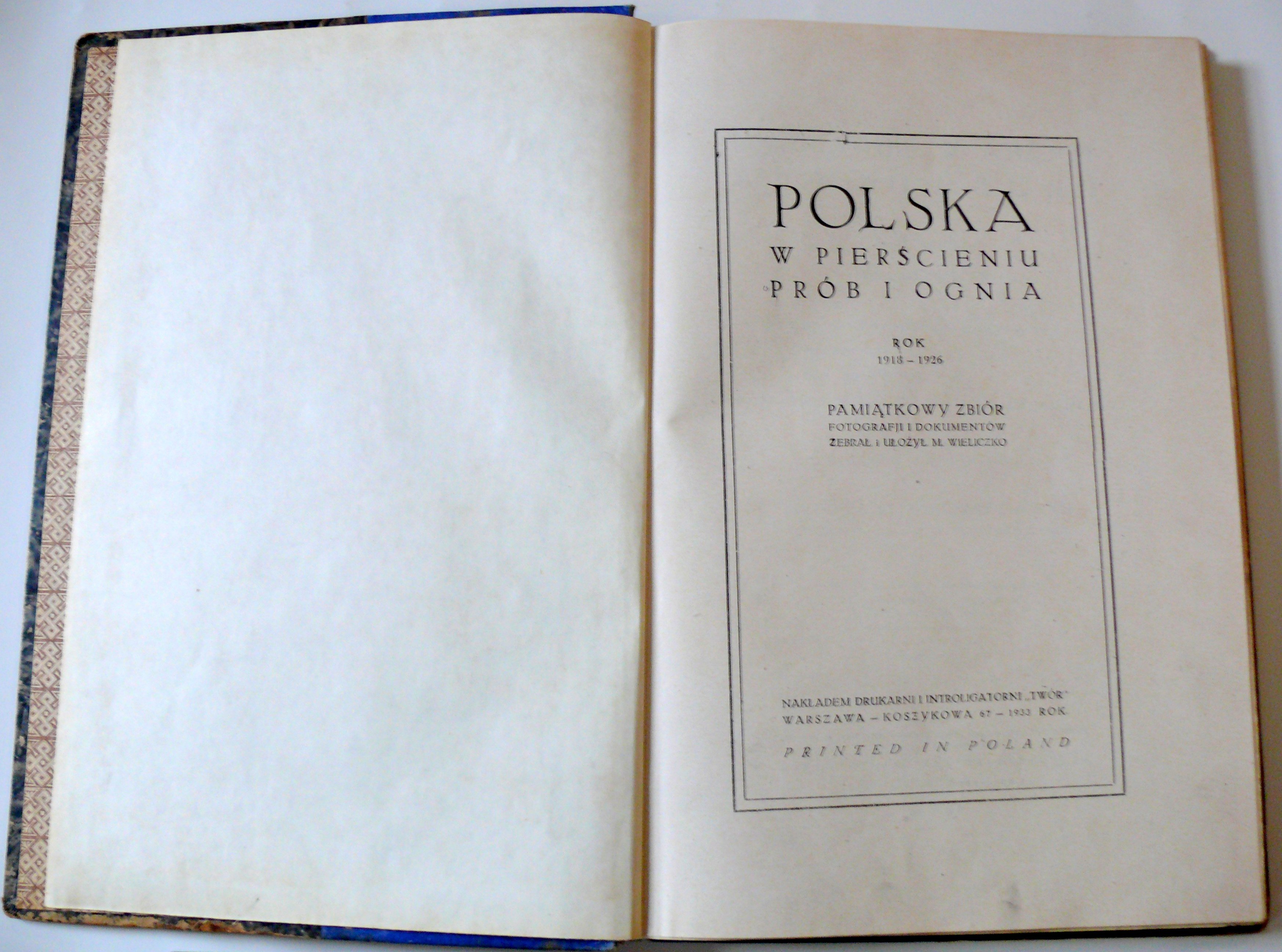 Wieliczko Maciej, "Polska w pierścieniu prób i ognia": rok 1918-1926 ; pamiątkowy zbiór fotografji i dokumentów zebrał i ułożył M.Wieliczko.