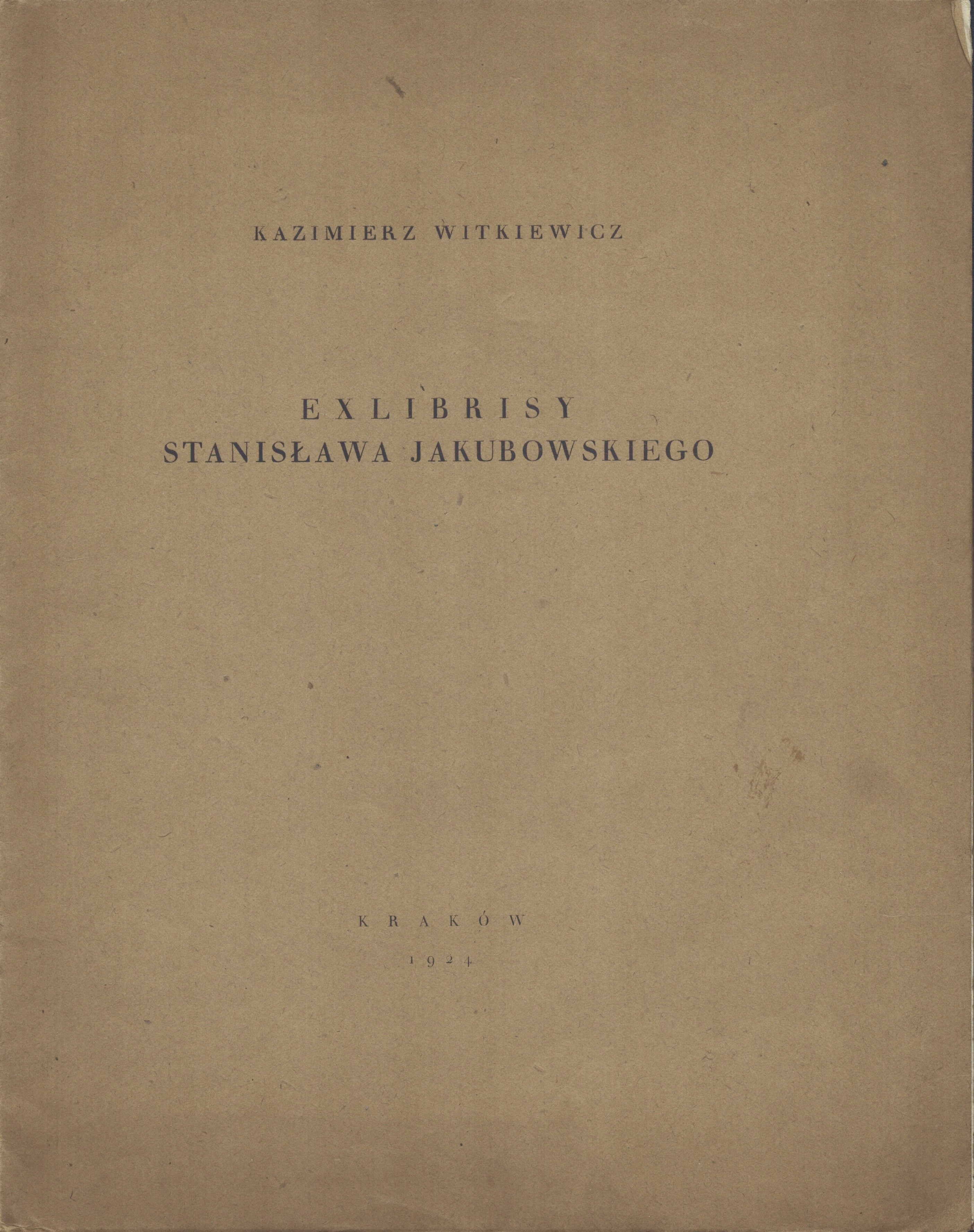Rzadkie wydawnictwo poświęcone ekslibrisom autorstwa Stanisława Jakubowskiego, przygotowane przez Kazimierza Witkiewicza (1880-1973) w nakładzie 50 egzemplarzy.