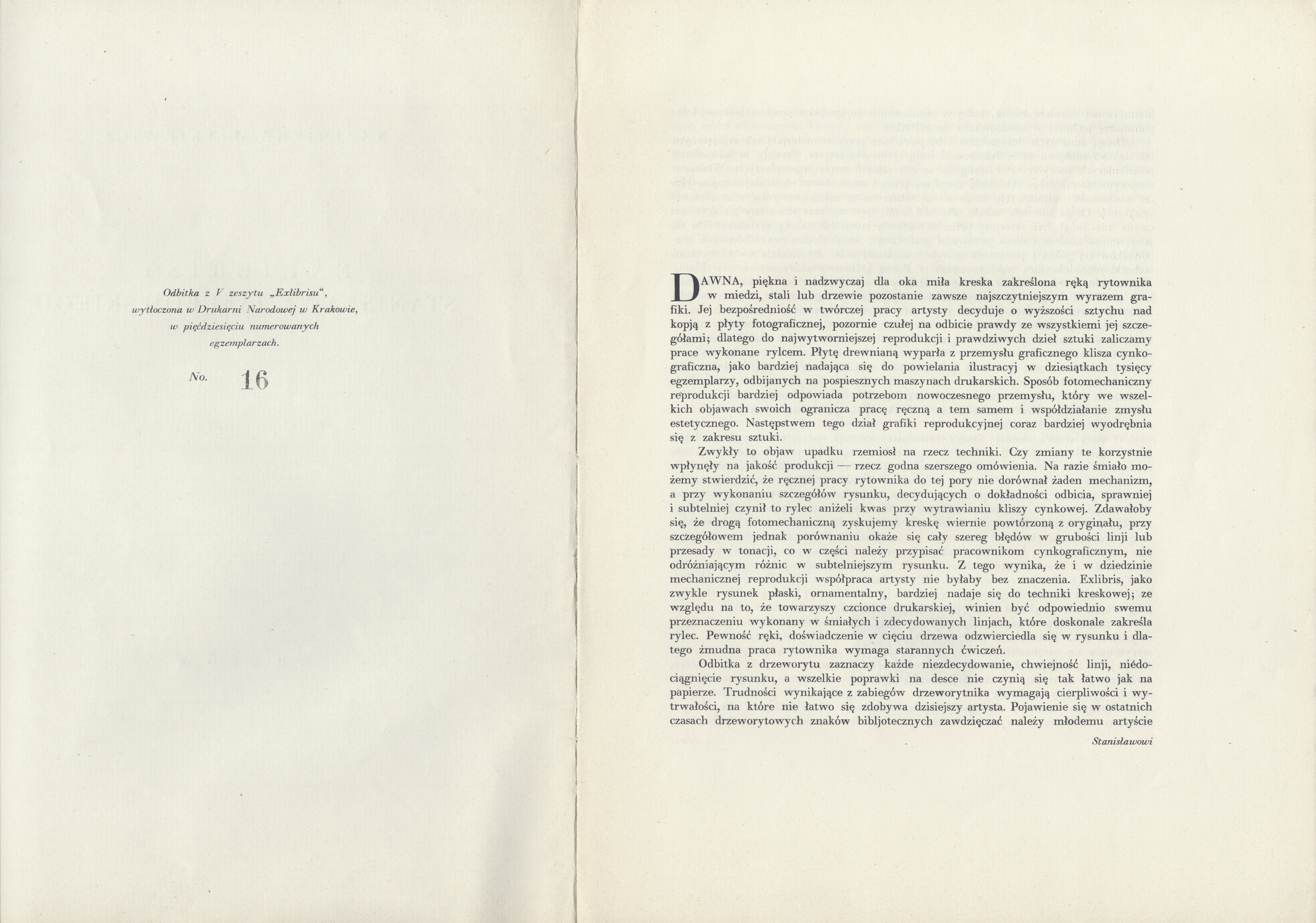 Odbitka z V zeszytu "Exlibrisu", wytłoczona w Drukarni Narodowej w Krakowie w 50 numer. egz., ten nr 16.