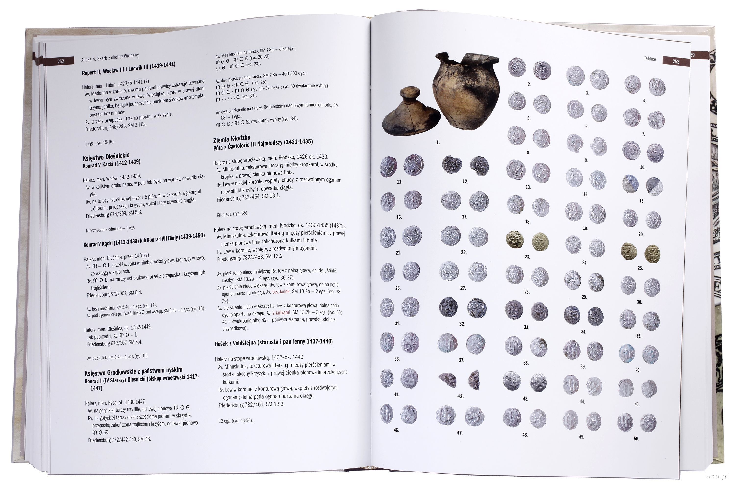 465 stron formatu ok. A4, oprawa twarda lakierowana, kilka tysięcy kolorowych fotografii; niezwykle obszerna monografia monet śląskich, wzbogacone szczegółowym katalogiem odmian i wariantów monet śląskich, kłodzkich i łużyckich; pierwsze, tak bogate, opracowanie weryfikujące i aktualizujące ustalenia Ferdinanda Friedensburga, opublikowane w 1931 roku; mimo, iż praca obejmuje „jedynie” ostanie 200 lat, czyli tzw. okres „rozbicia lennego”, jest bardzo rozległa przez duże rozdrobnienie księstw, licznych władców a także różnorodne strefy i standardy monetarne