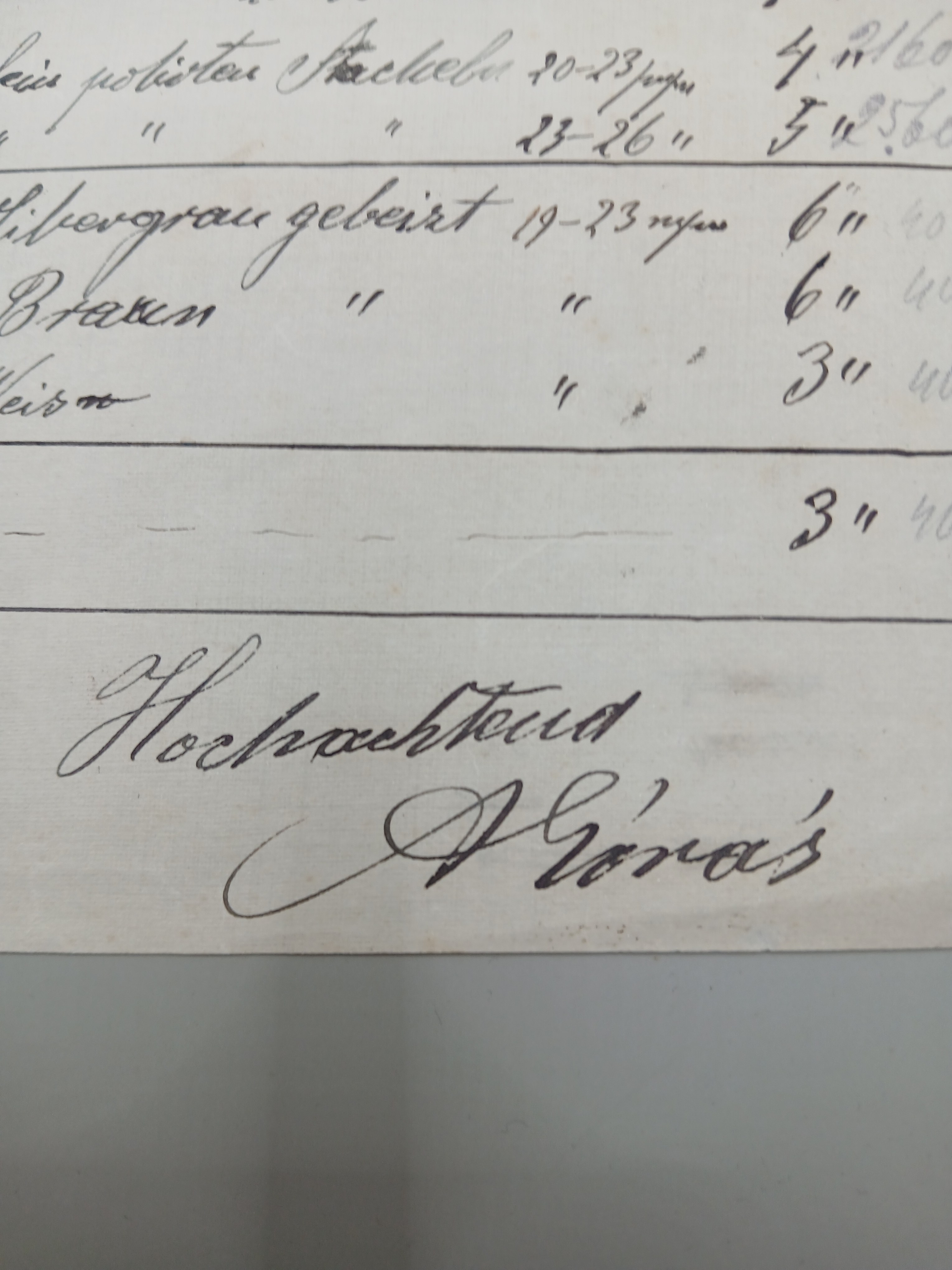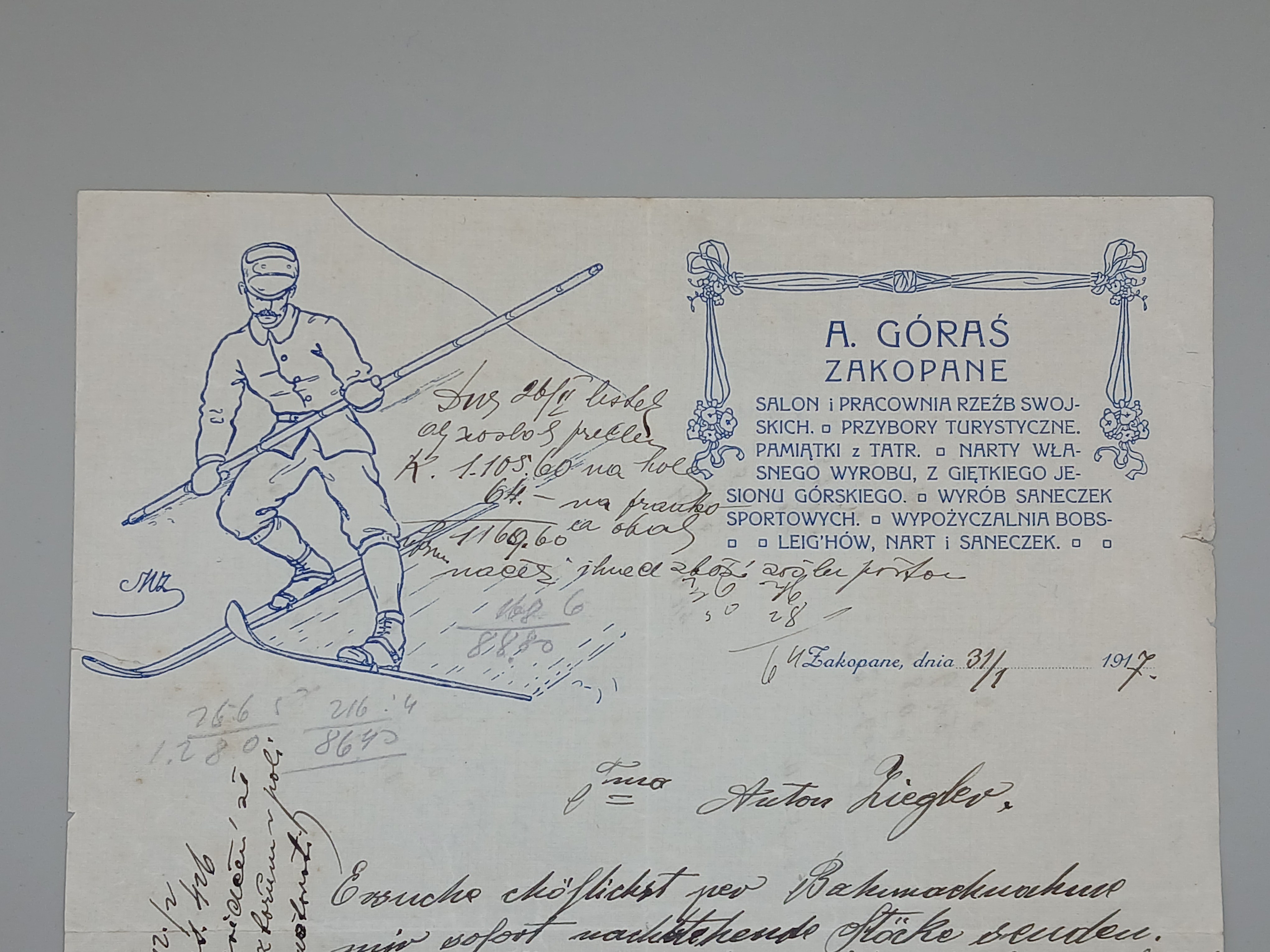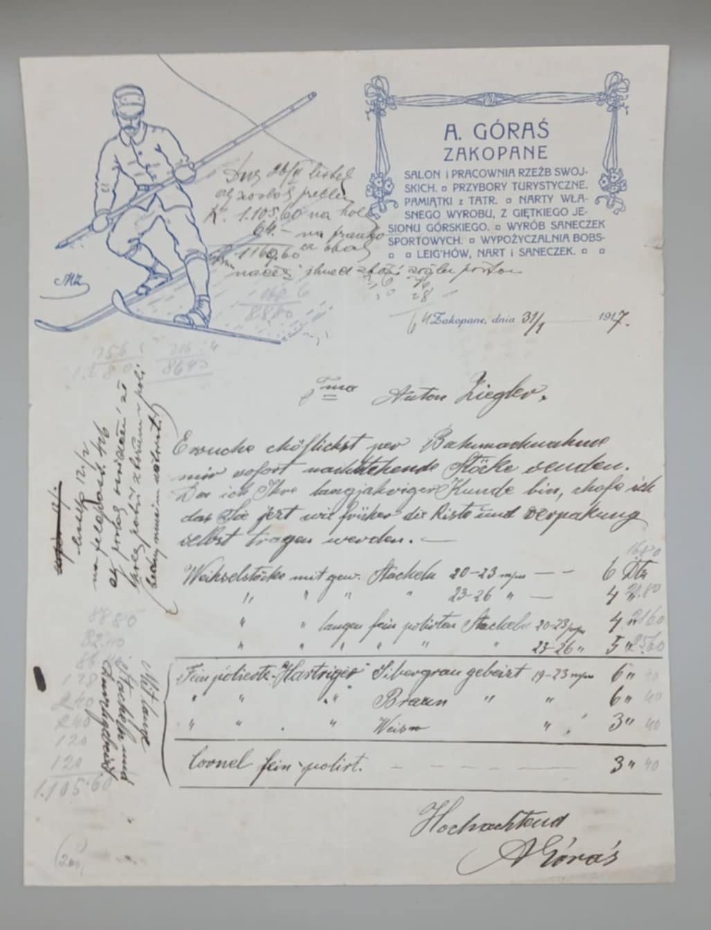 Korespondencja firmowa z Salonu Andrzeja Górasia w Zakopanem, z dnia 31 stycznia 1917 roku, podpisane przez niego odręcznie.