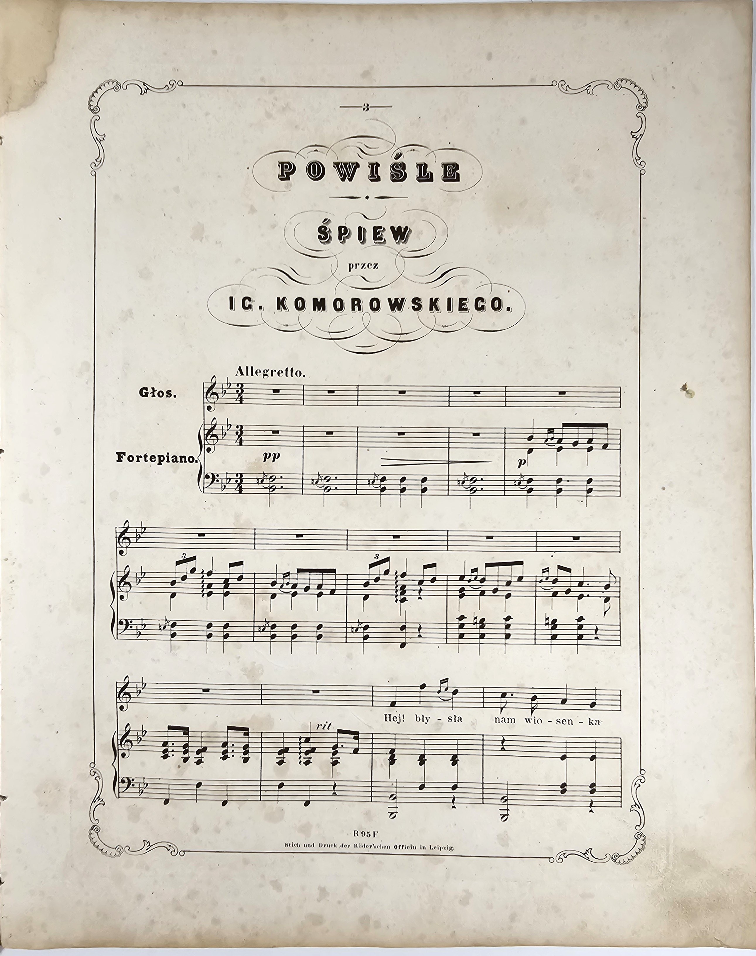 4, s. 13. Warszawa, nakł. R. Friedlein, nr wydawniczy R. 95 F. Nieznaczne rdzawe plamki, lewy górny róg ze śladami starego zalania, dolne rogi zabrudzone. Pierwsze wydanie (?). Rzadkie.