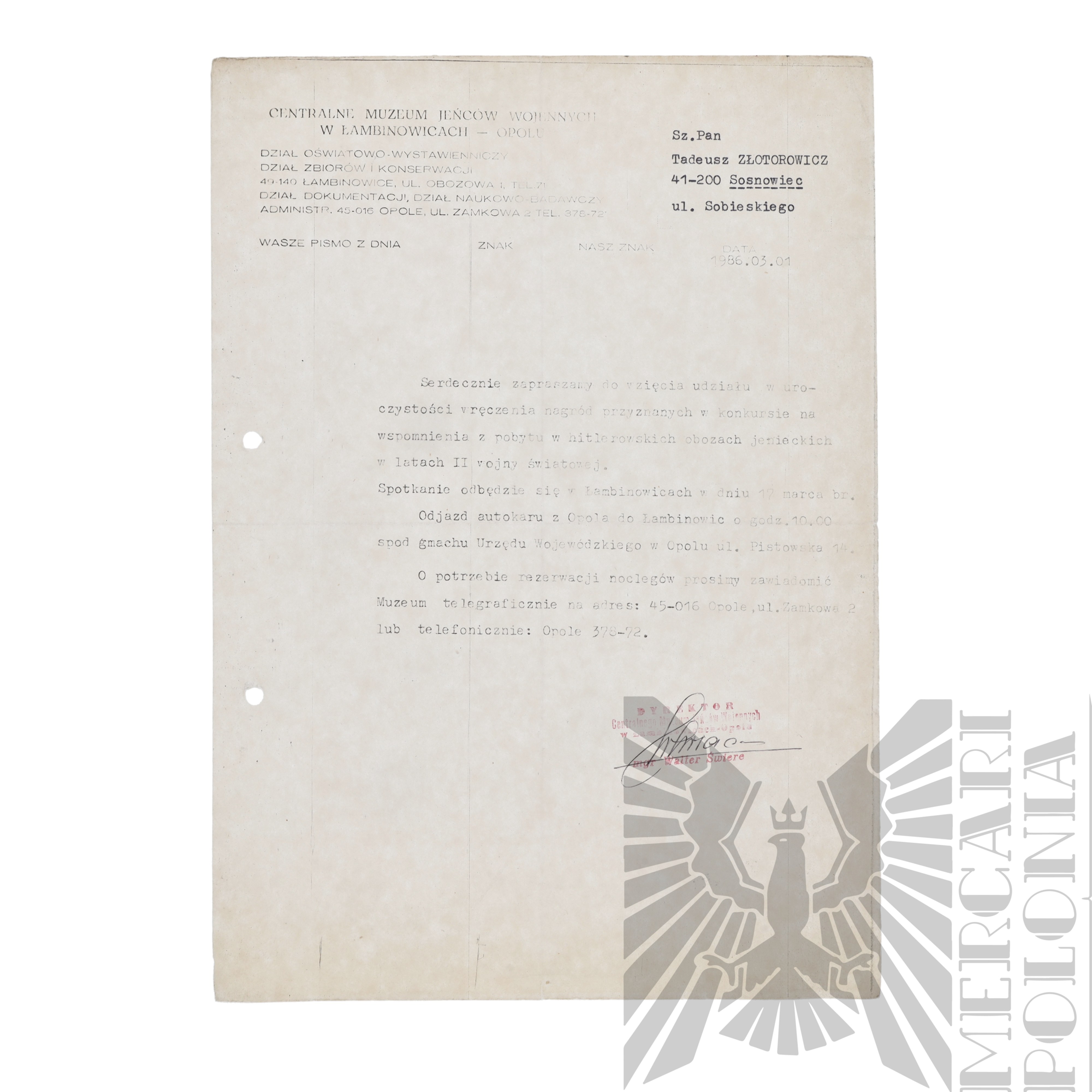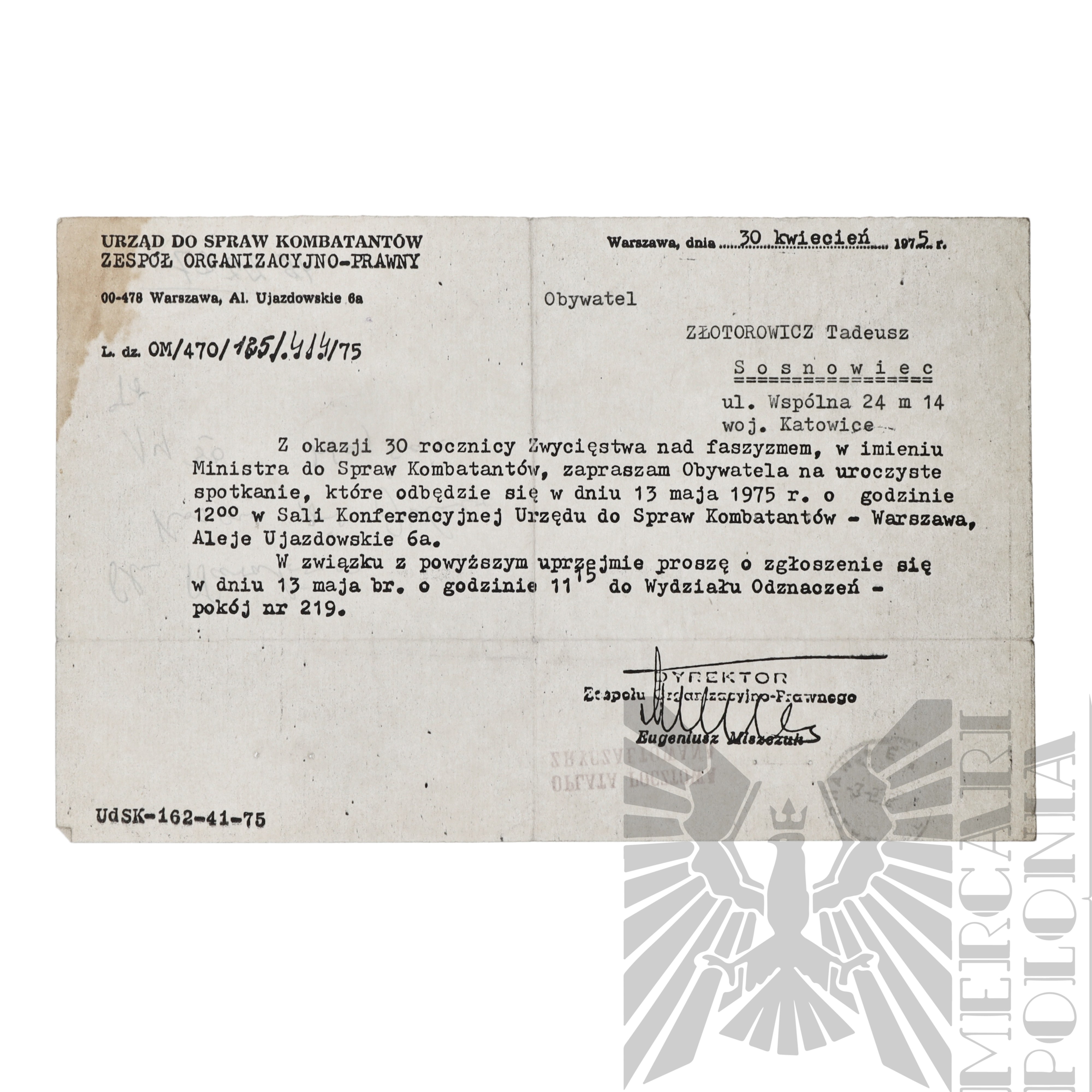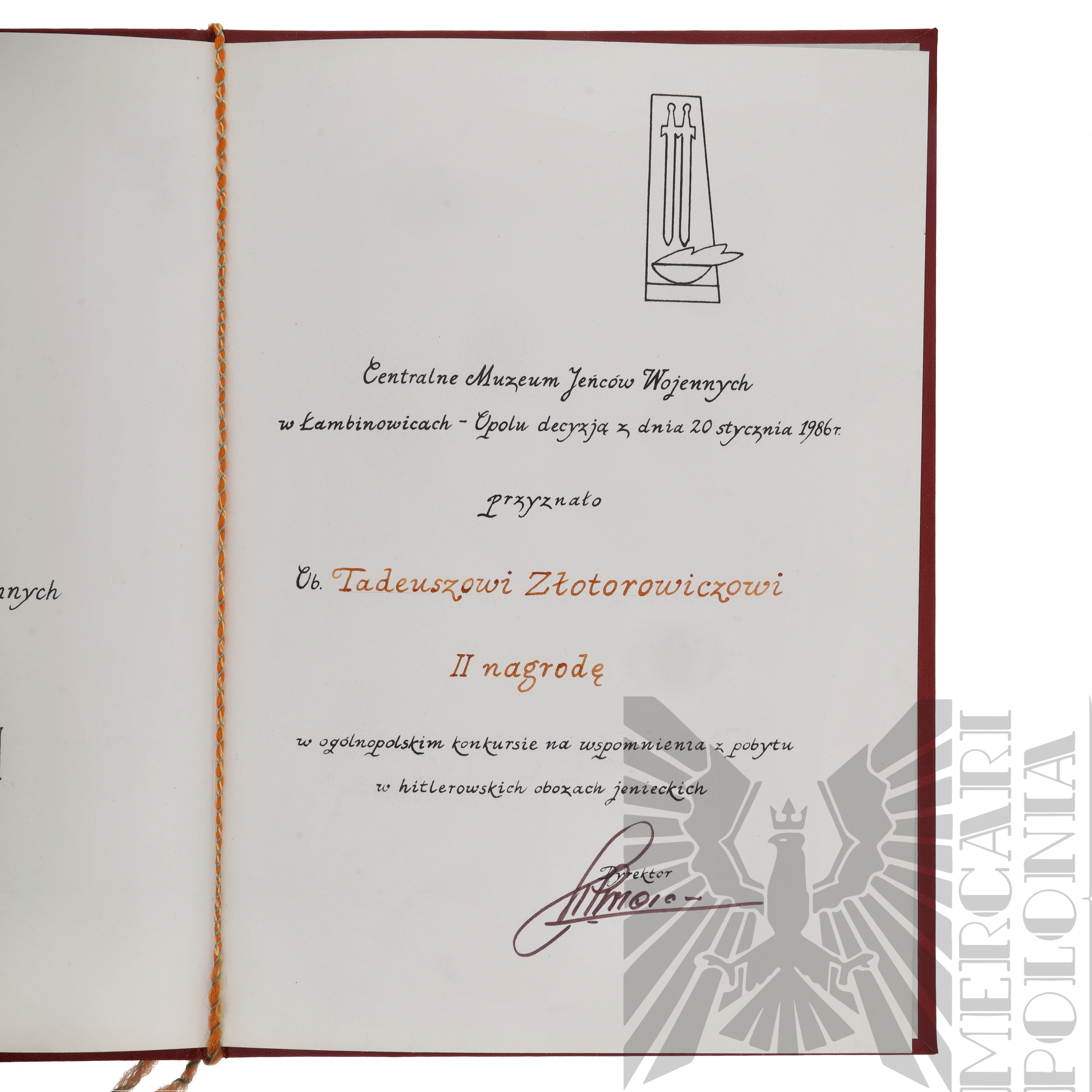 Tadeusz Złotrowicz urodzony 3 sierpnia 1918 roku pod Lwowem. Brał udział w Kampanii Wrześniowej w Batalionie Obrony Narodowej “TURKA” w Turce nad Stryjem. Przedostał się przez Węgierską granicę a następnie został internowany. Po przedostaniu się do Francji wstąpił do 1 Pułku Grenadierów Warszawy 1 Dywizji Grenadierów, gdzie pełnił funkcje strzelca ręcznego karabinu maszynowego, ranny dwukrotnie podczas przebijania się z niemieckiego okrążenia w bitwie pod Desseling za co w 1975 roku został odznaczony Srebrnym Krzyżem Orderu Virtuti Militari. Od 1940 roku przebywał w niewoli niemieckiej, w 1942 roku razem z dwoma kolegami uciekł z obozu jenieckiego a następnie przez Francję, Hiszpanię, Portugalię i Irlandię przedostał się do Wielkiej Brytanii, gdzie wstąpił w szeregi 10 Pułku Strzelców Konnych 1 Dywizji Pancernej. Przeszedł cały szlak bojowy od Normandii po Wilhelmshaven, za zniszczenie czołgu “Pantera” z odległości 50 metrów został odznaczony Krzyżem Walecznych oraz uczestniczył we wzięciu do niewoli generała Otto Von Elfelda, dowódcę 84 Korpusu. Pełnił on funkcje radiooperatora czołgowego a następne dowódcy czołgu. Po wojnie ukończył kurs w gimnazjum kupieckim 1 Dywizji Pancernej a w 1947 roku wrócił do kraju i zamieszkał w Sosnowcu, bardzo aktywnie działał w organizacjach kombatanckich.