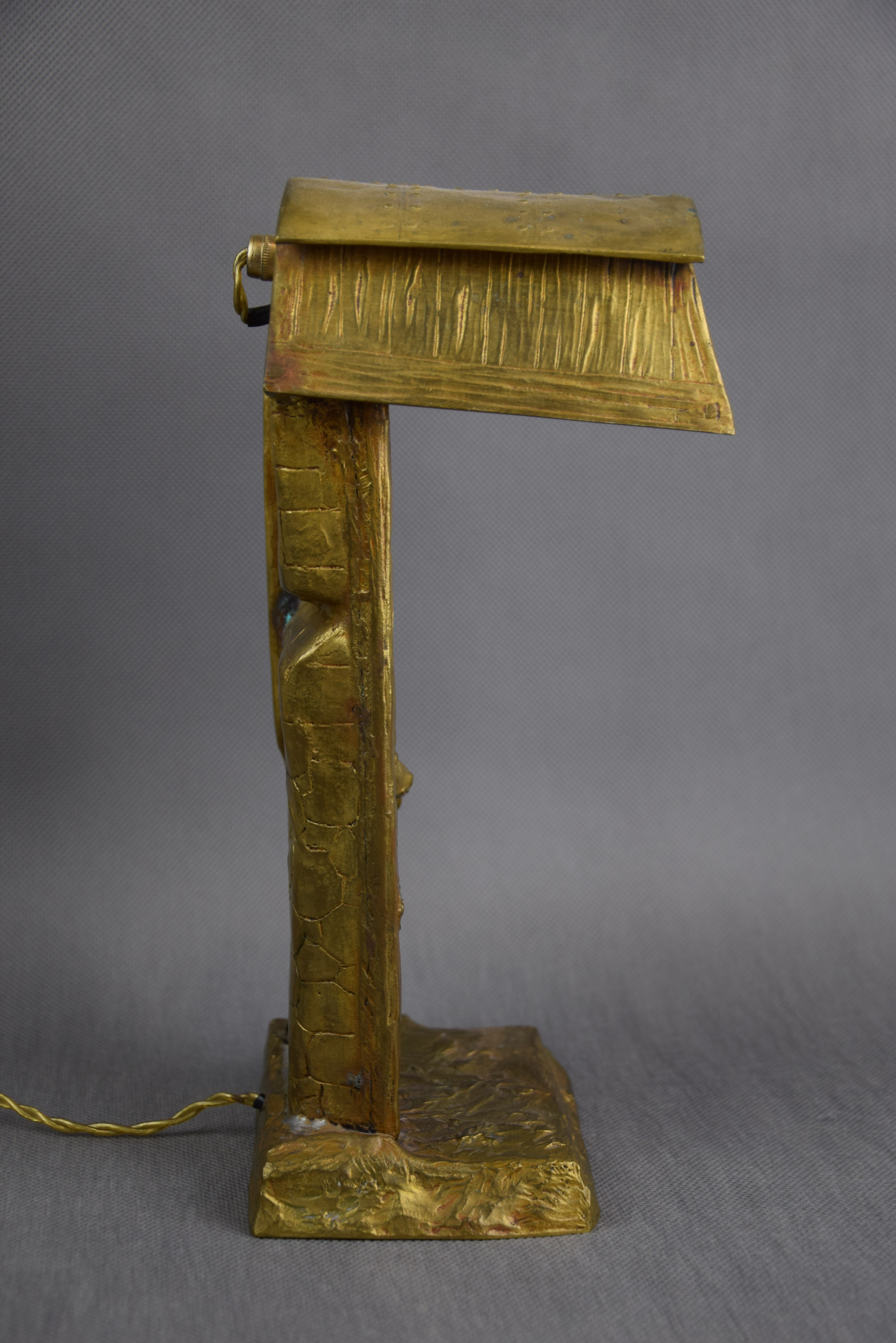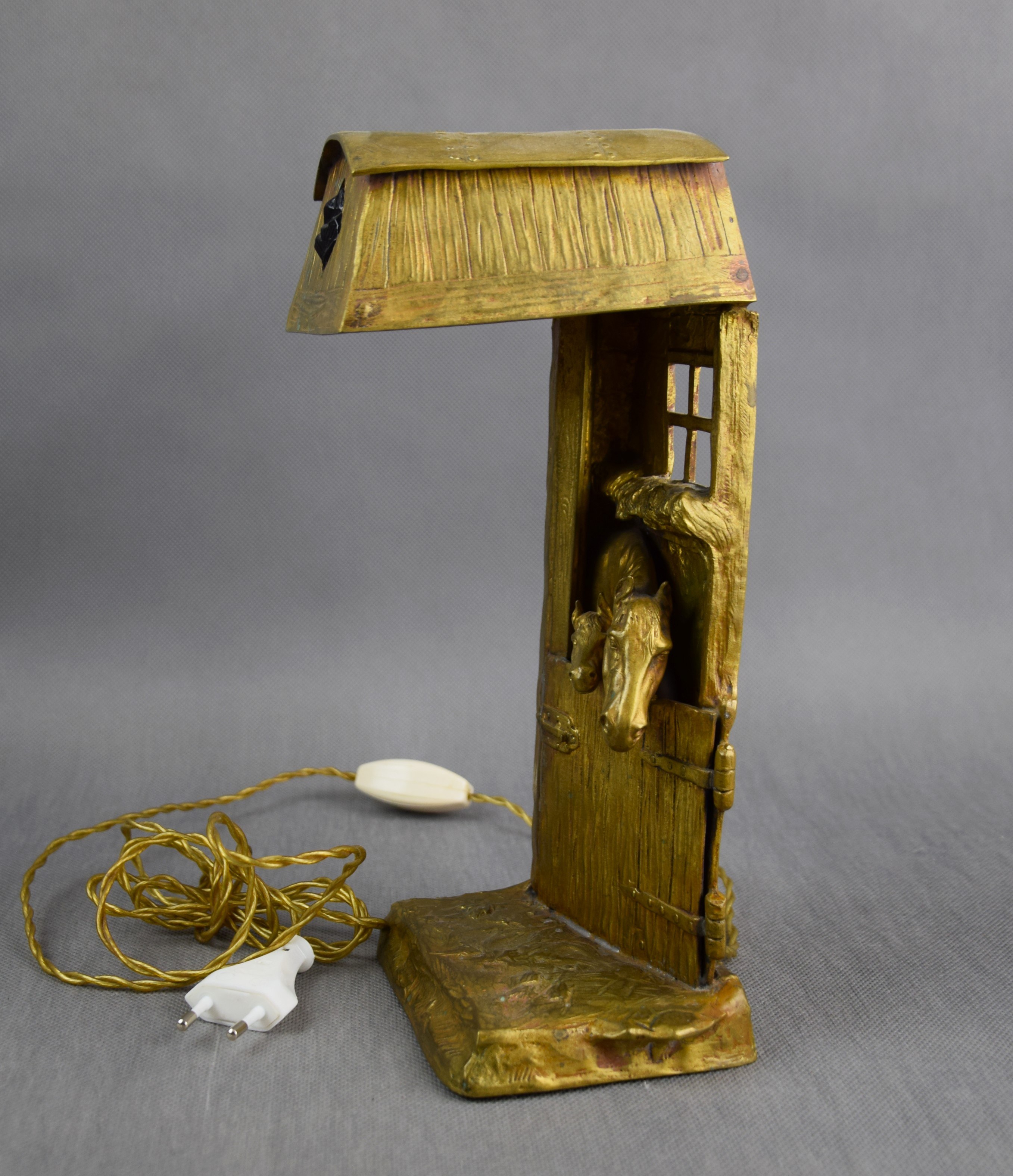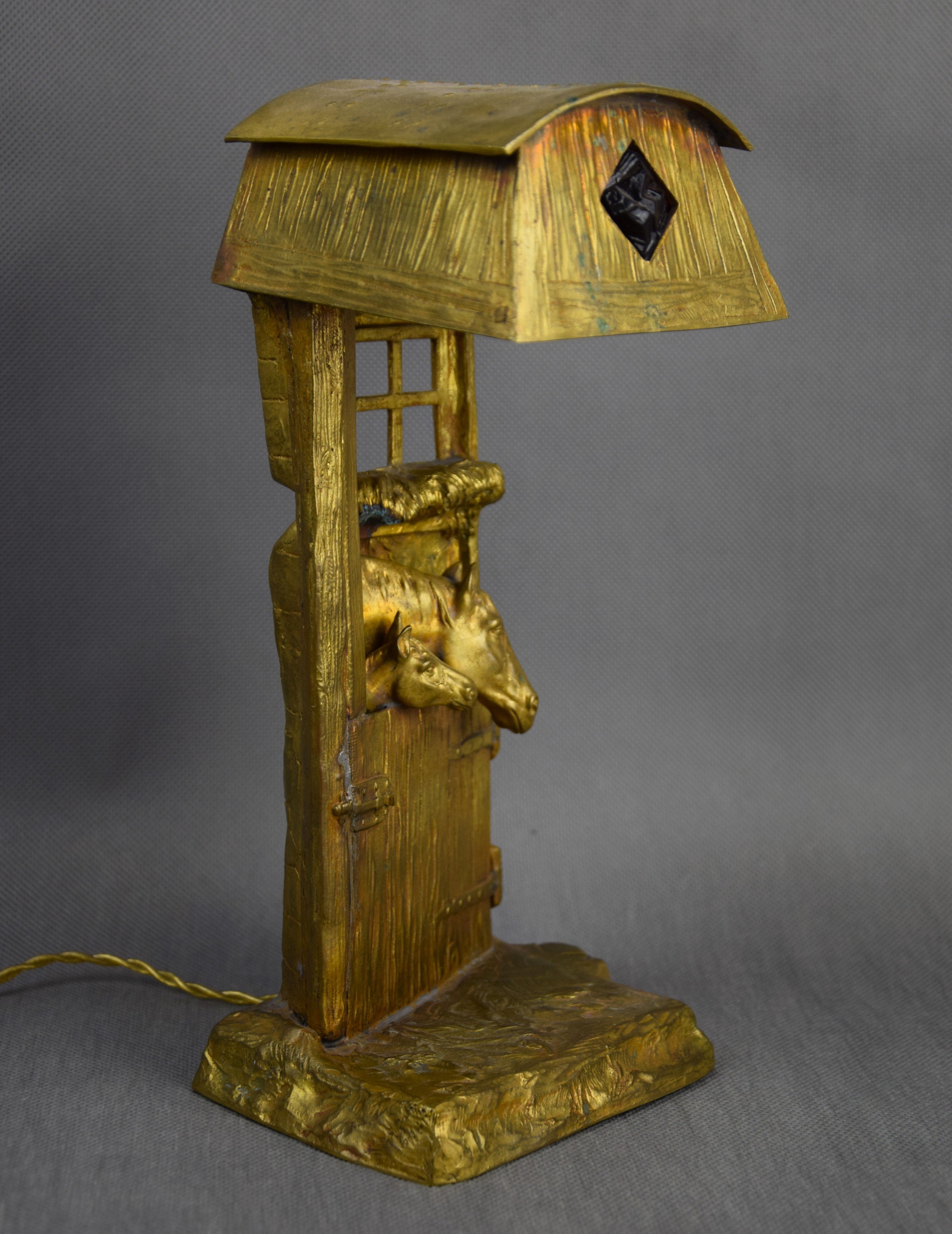 Lampka z brązu z przedstawieniem koni w zagrodzie.