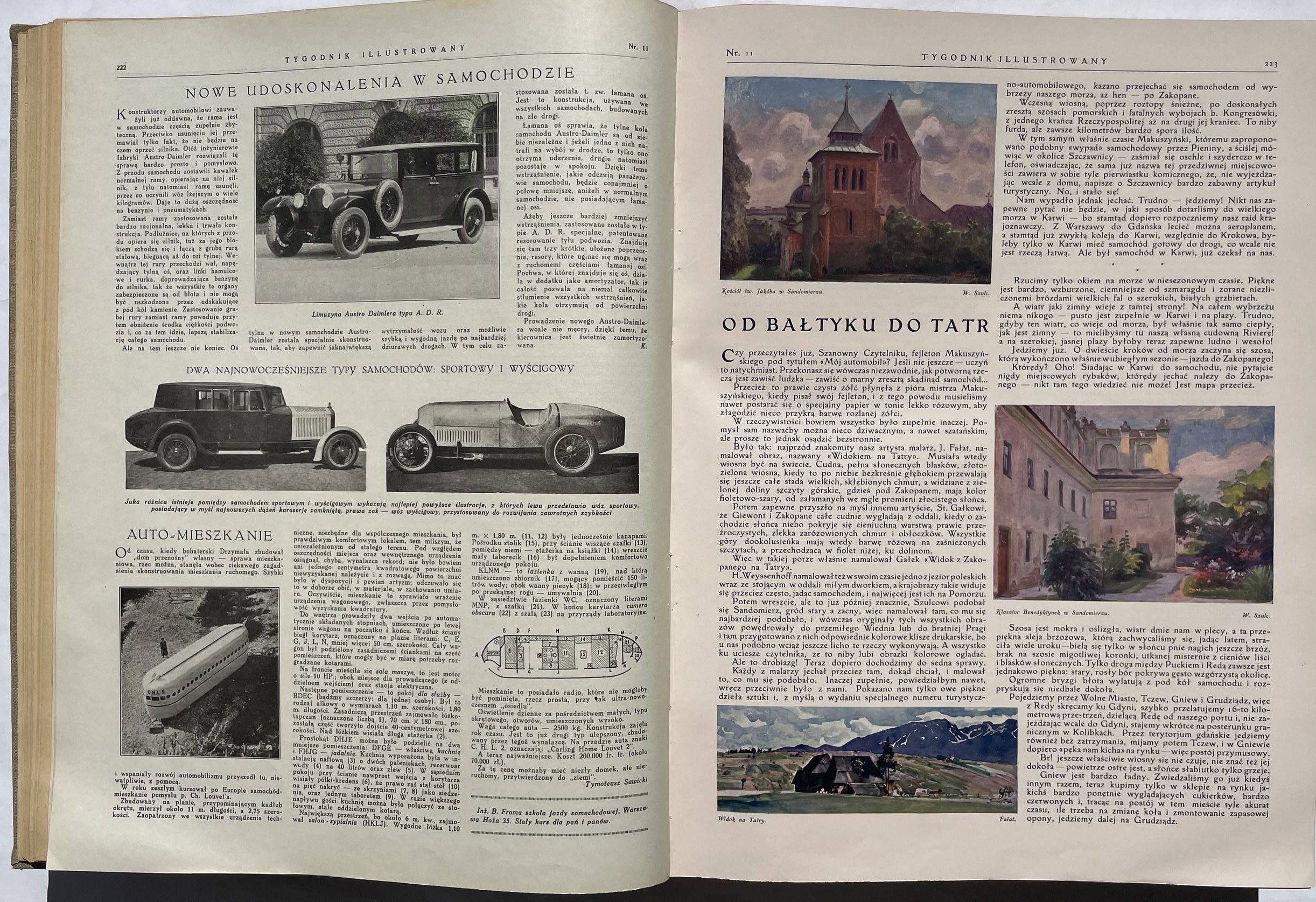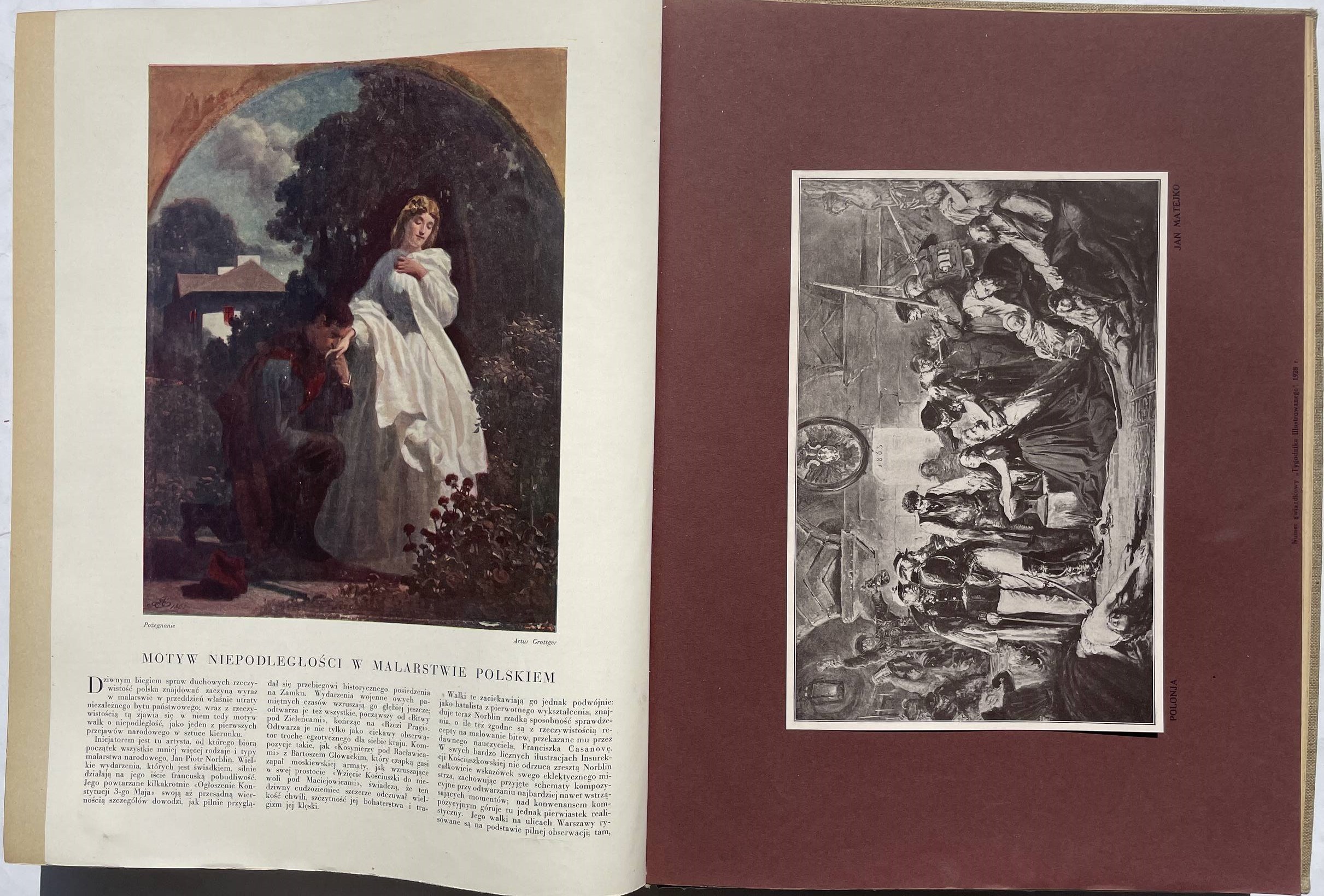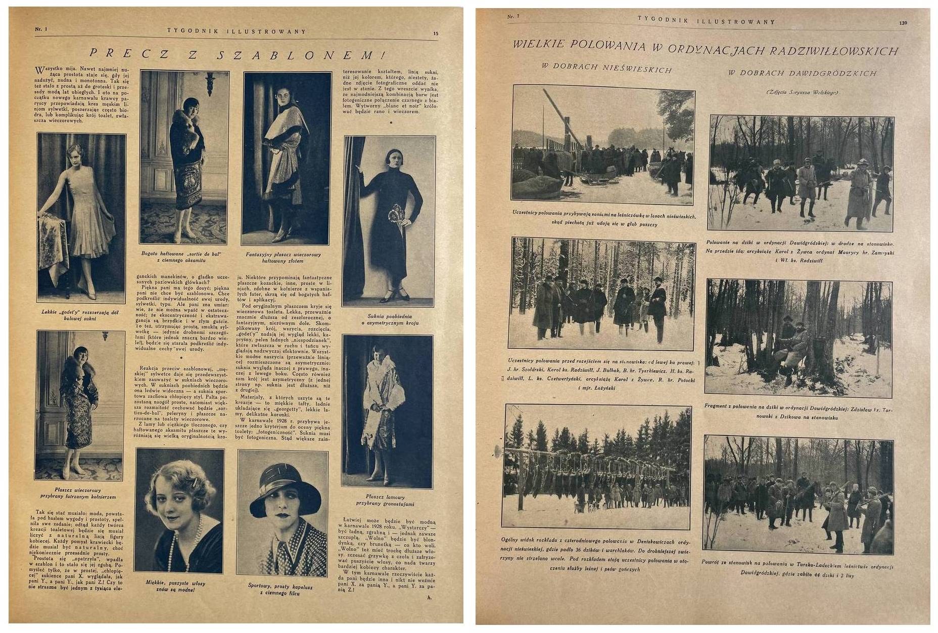 Tygodnik Illustrowany. Rok 1928 nr 1-52 (I i II półrocze). 38,5 cm, str. 972. Oprawa z epoki pł. z szyldem na grzb. W nr 1 i po str. 24 pomyłka w paginacji, brak 12 kart (ostatnie strony z reklamami) i spisu treści półrocza II. Stan bardzo dobry, ładny egz.