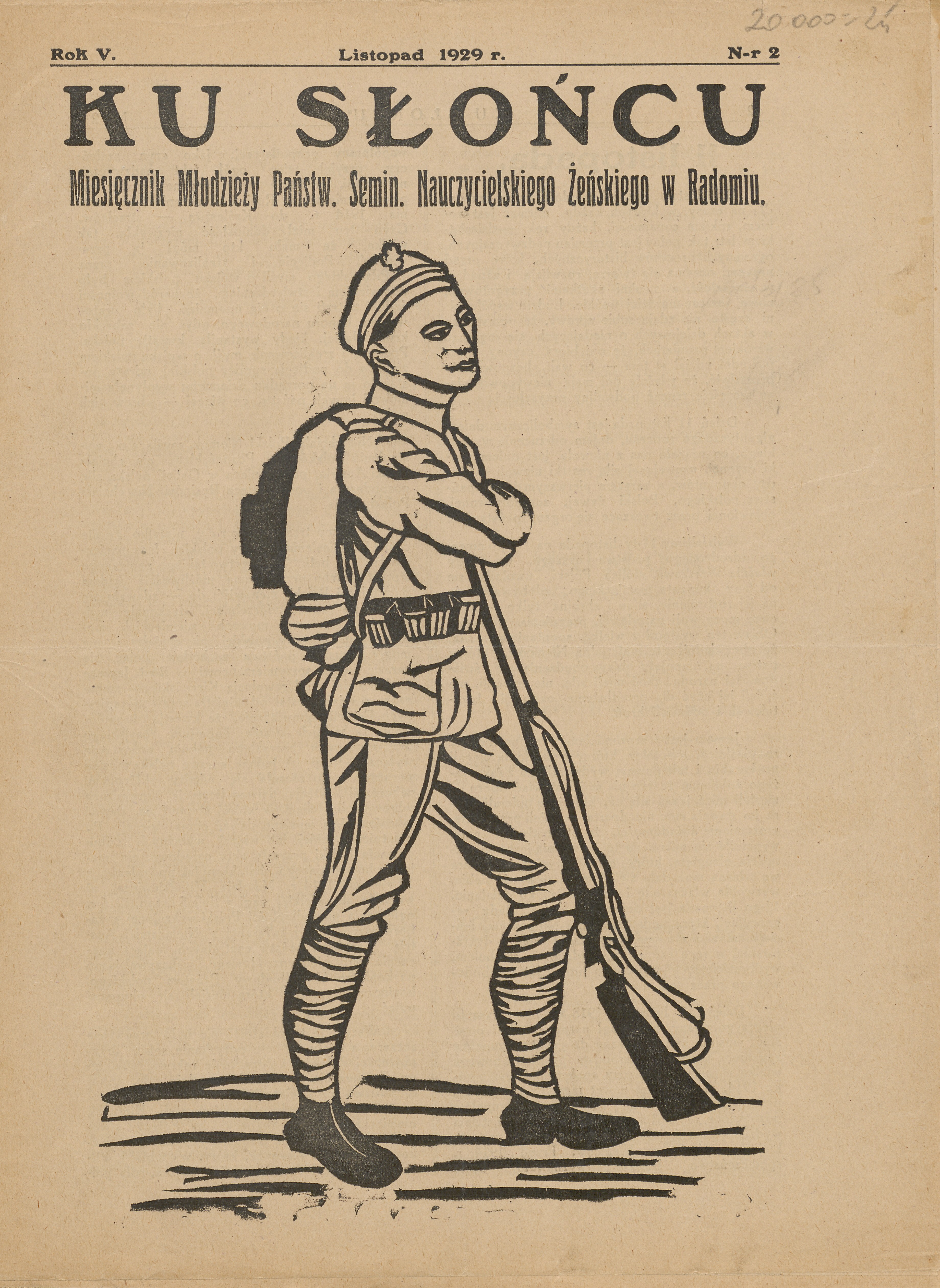 Zestaw 3 numerów (3 z 1927, 3 z 1928 i 2 z 1929 roku) czasopisma Ku Słońcu, miesięcznika Żeńskiego Seminarium Nauczycielskiego w Radomiu. Seminarium rozpoczęło działalność 10 grudnia 1917 roku, jako odpowiedź na rosnącą liczbę dziewcząt uczęszczających do seminarium koedukacyjnego. W 1922 roku placówka uzyskała status szkoły publicznej. Została zlikwidowana na mocy ustawy z 11 marca 1932 roku, która zakładała stopniowe wygaszanie seminariów nauczycielskich. Ostatnie absolwentki ukończyły szkołę w 1936 roku.