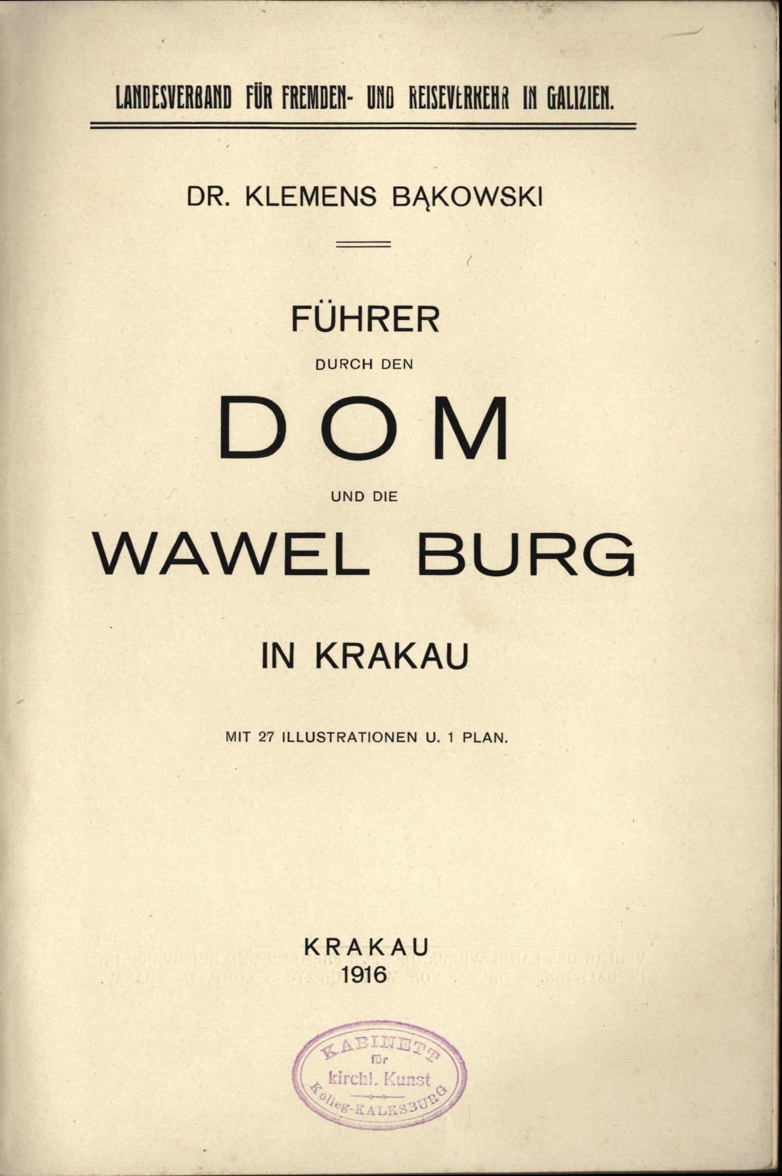 Przewodnik po Katedrze Wawelskiej oraz Zamku na Wawelu wydana w 1916 roku przez Klemensa Bąkowskiego, wybitnego znawcę i miłośnika przeszłości miasta Krakowa. Publikacja w języku niemieckim.