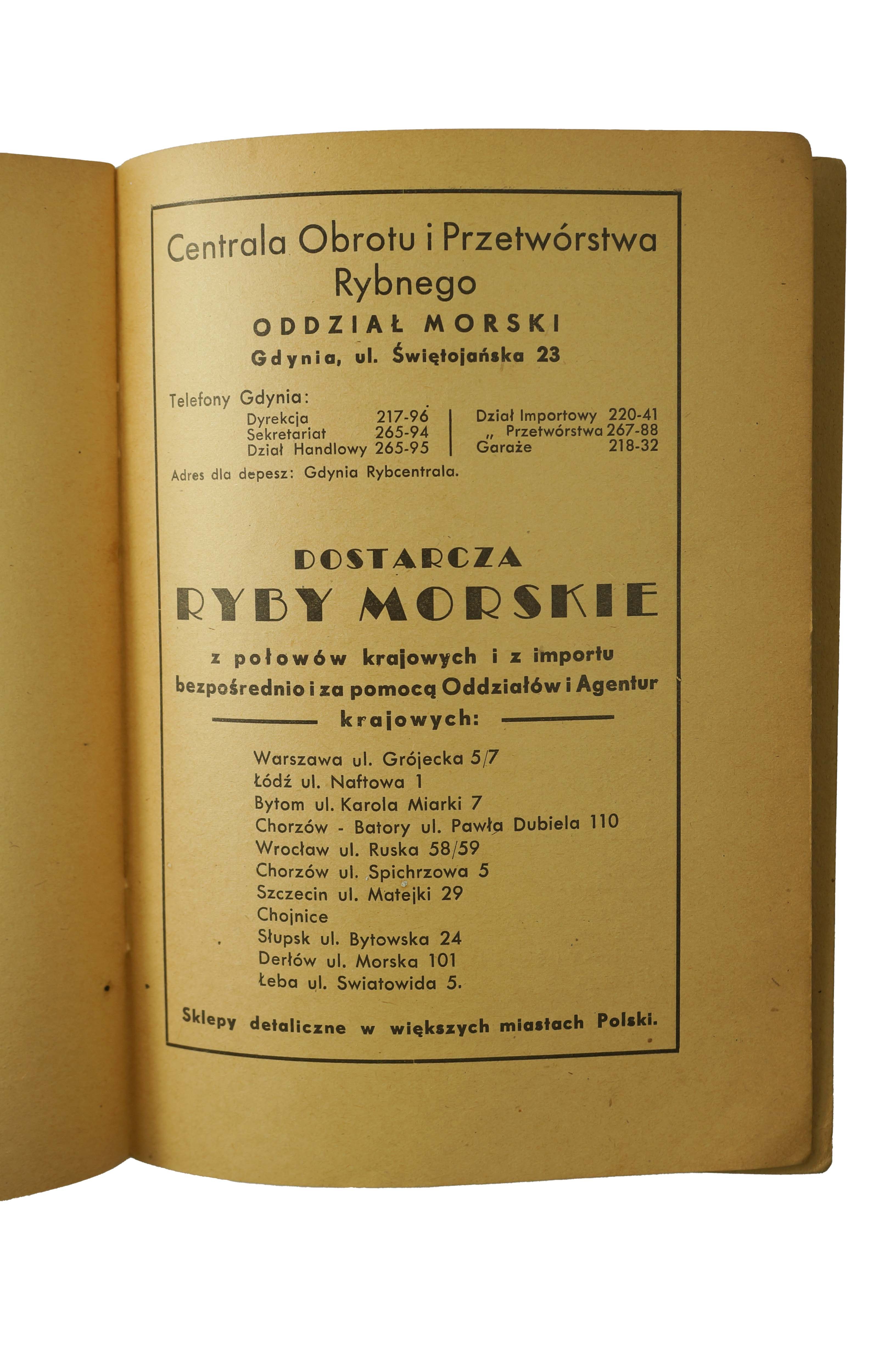 Przepisy przyrządzania ryb morskich - A.Karnicka, Spółdzielnia Wydawnicza "Żeglarz" w Gdyni, f. 15x21cm, s. 25, [6]