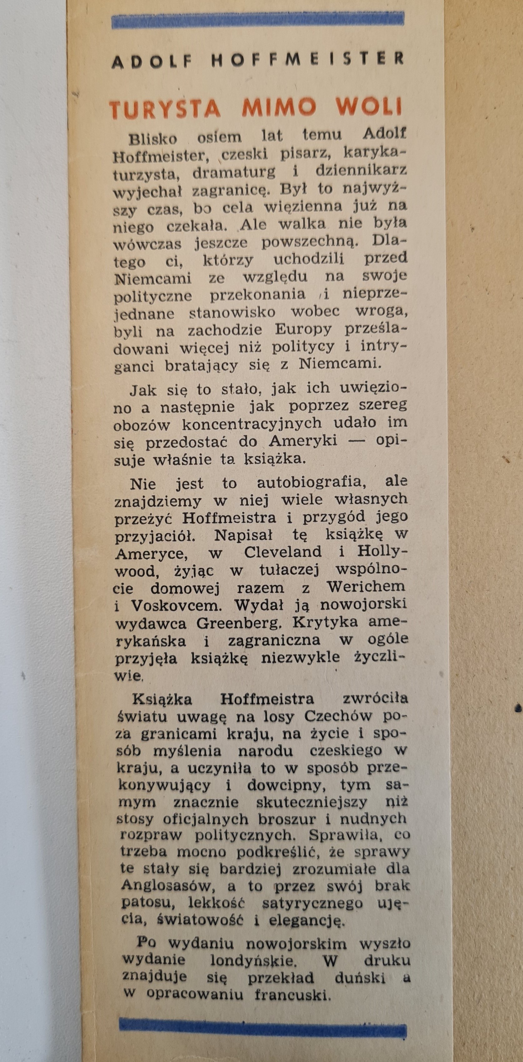 HOFFMEISTER Adolf - TURYSTA MIMO WOLI