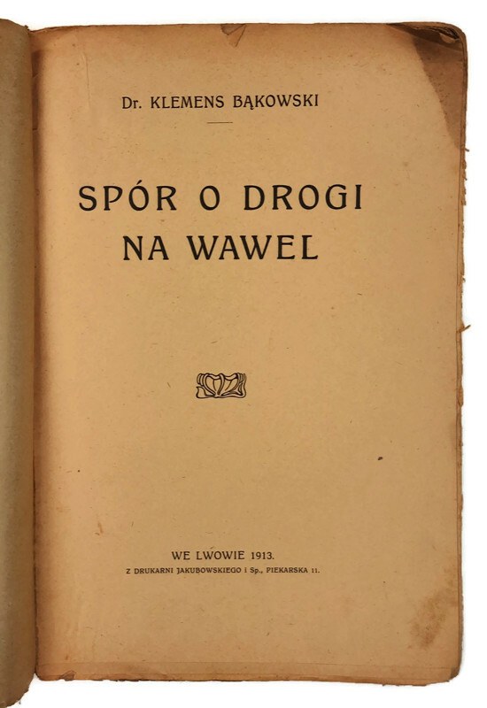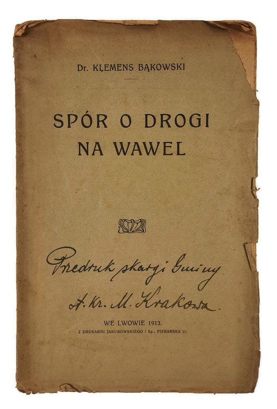Spór o drogi na Wawel - Dr. Klemens Bąkowski, książka wydana w 1913 roku we Lwowie, odbitka z "Przeglądu prawa i administracyi"