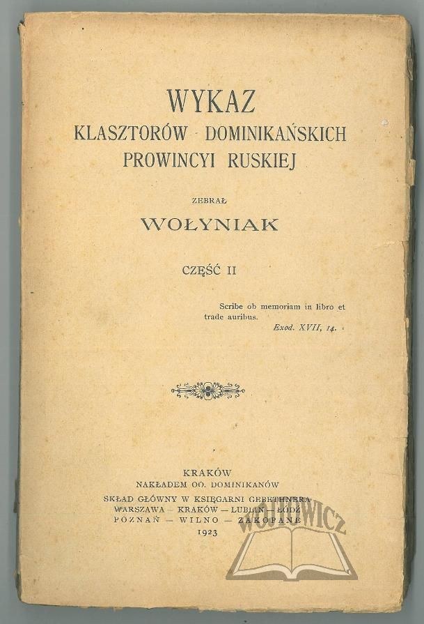 Zebrał Wołyniak. Część II. Kraków 1923. Nakł. OO. Dominikanów. Skład gł. w Księgarni G. Gebethnera i Sp. 8, s. [4], 400, okł. brosz. oryg. zachowa.