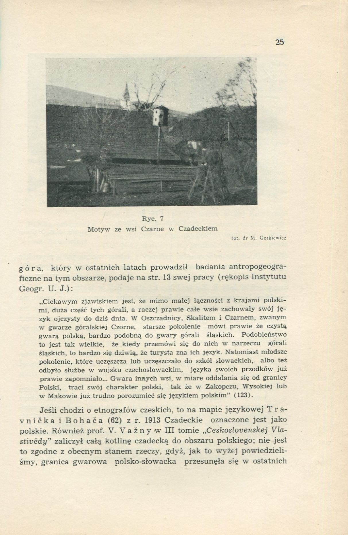 W treści m.in.: Polskość Górnej Orawy w opinii obcych i polskich badaczy. Opinia czeskiego językoznawcy Pastrneka. Mapa etnograficzna L. Niederlego. Polscy publicyści o wynaradawianiu górali na Spiszu, Orawie i w Czadeckiem. "Koło Spiżowe" i "Gazeta Podhalańska". Warunki pracy na Spiszu, Orawie i w Czadeckiem. Przygotowania do plebiscytu. Rewindykacje z r. 1938. Obecne stosunki etniczne w Czadeckiem. Zróżnicowanie gwary polskiej w Czadeckiem. Polska emigracja z Czadeckiego na Bukowinie. Pochodzenie osadników polskich w Czadeckiem. Wzmożenie się kolonizacji polskiej w wieku XVI. Ekspansja gospodarcza osadników. Przewaga elementu śląskiego i żywieckiego w Czadeckiem. Nazwiska osadników jako dowód ich pochodzenia. Ślady emigracji polskiej na Węgrzech. Wieś Zakopcze. Ocena dzisiejszej granicy politycznej polsko-słowackiej.