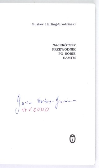 HERLING-GRUDZIŃSKI Gustaw - Najkrótszy przewodnik po sobie samym. Opracowanie i przygotowanie tekstu do druku Włodzimierz Bolecki. Kraków 2000. Wyd. Literackie. 16d, s. 145, [2]. brosz.